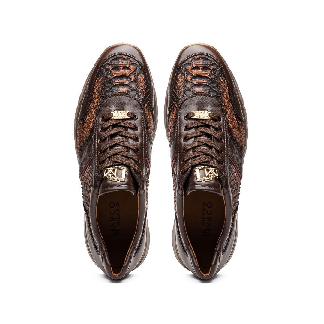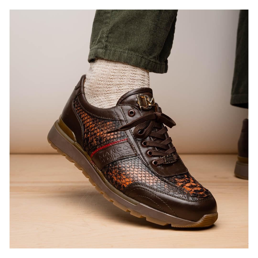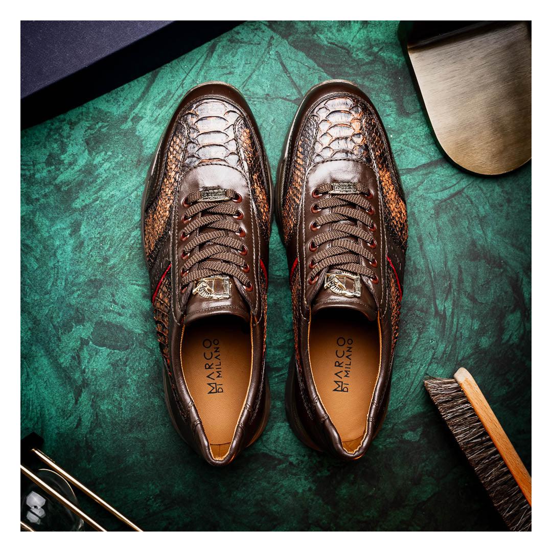 • Marco Di Milano Brescia Men's Shoes Washed Cognac Genuine Python / Calf-Skin Leather Sneakers (MDM1124)
