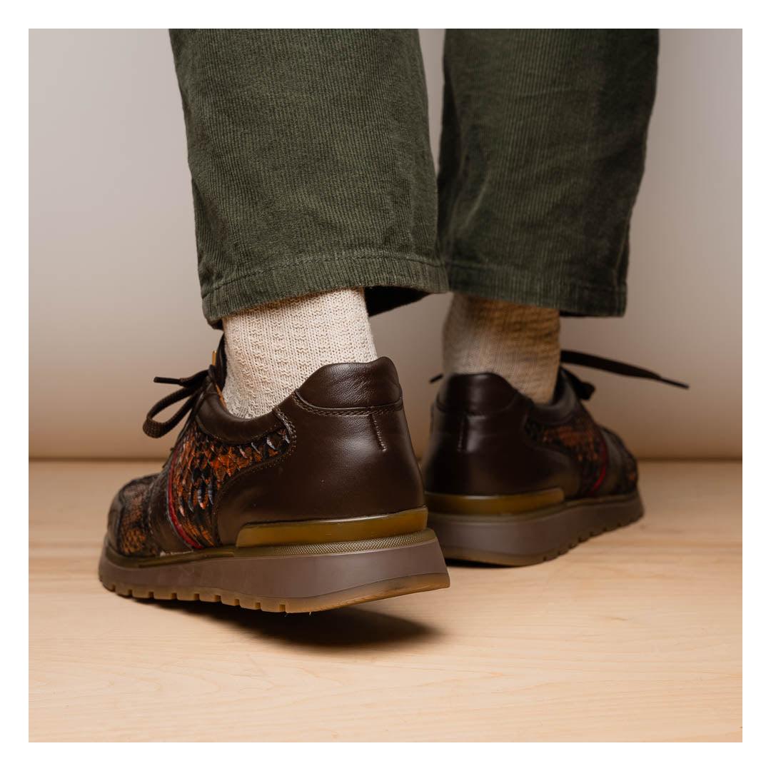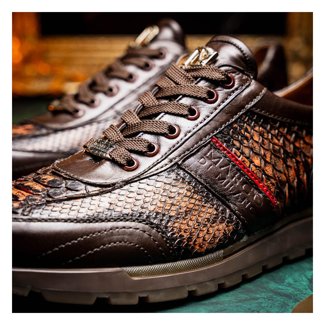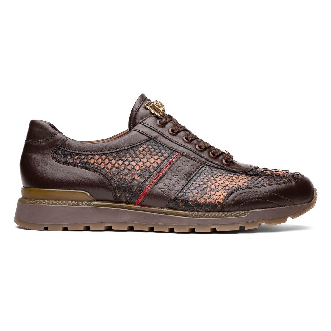 • Marco Di Milano Brescia Men's Shoes Washed Cognac Genuine Python / Calf-Skin Leather Sneakers (MDM1124)