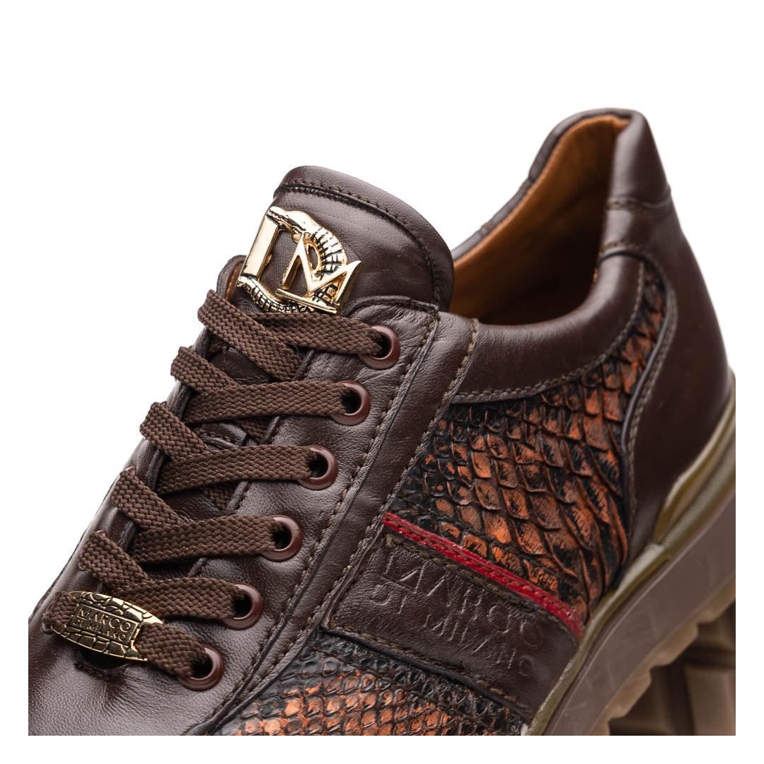 Marco Di Milano Brescia Men's Shoes Washed Cognac Genuine Snake Skin / Calf-Skin Leather Sneakers (MDM1124)