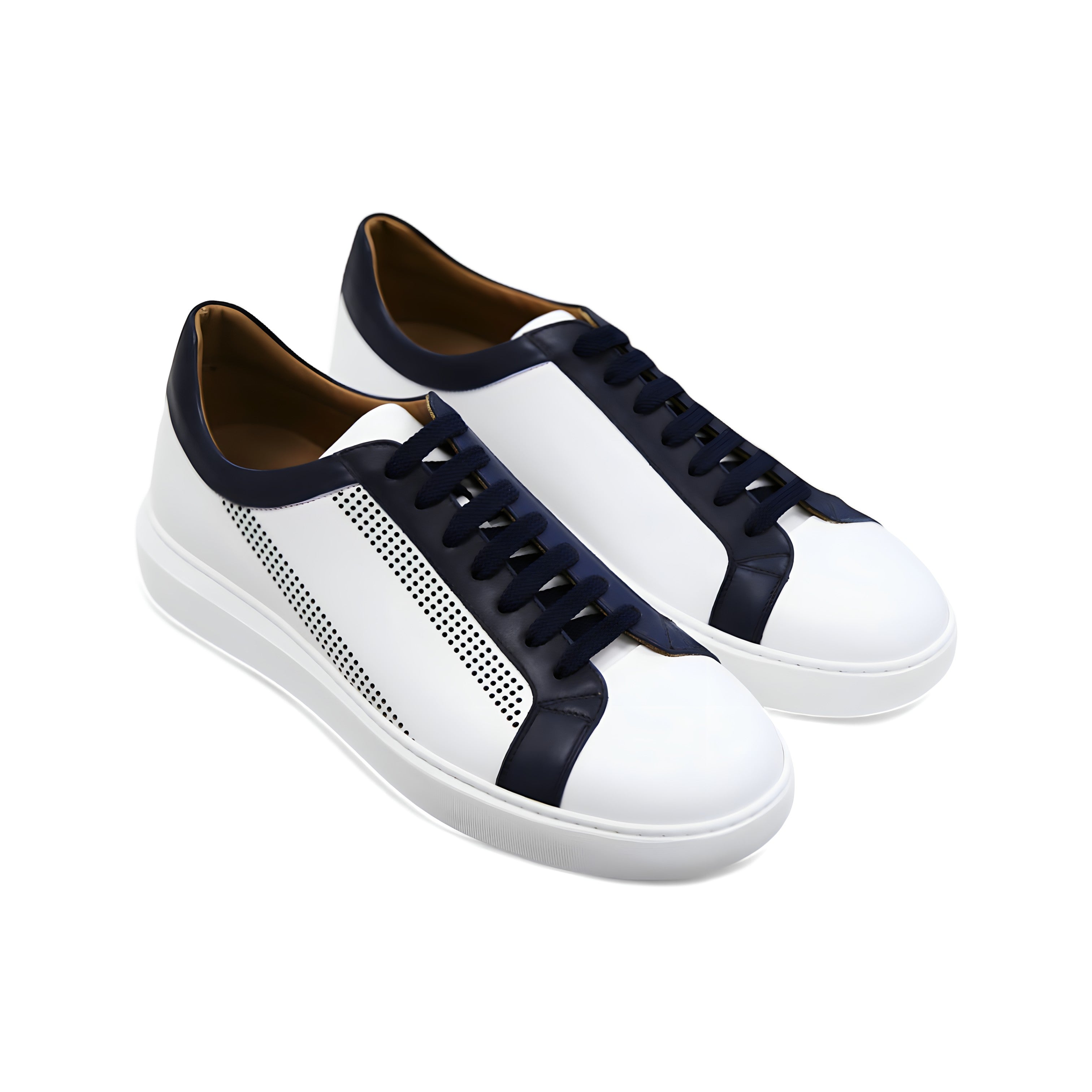 • Donatello Deron Men's Shoes White & Blue Calf-Skin Leather Casual Sneakers (DON1001)