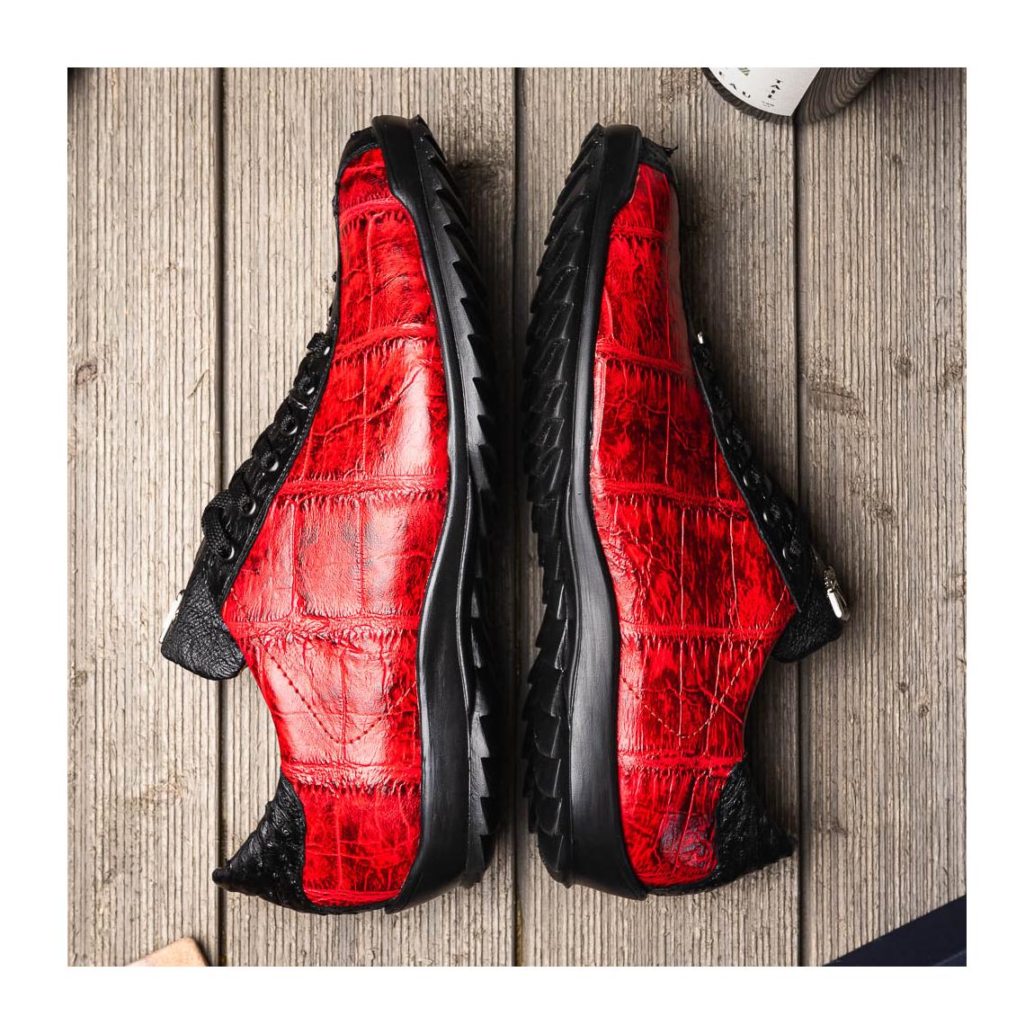 Marco Di Milano Saulo Men's Shoes Black Cherry Exotic Ostrich / Alligator Casual Sneakers (MDM1045)