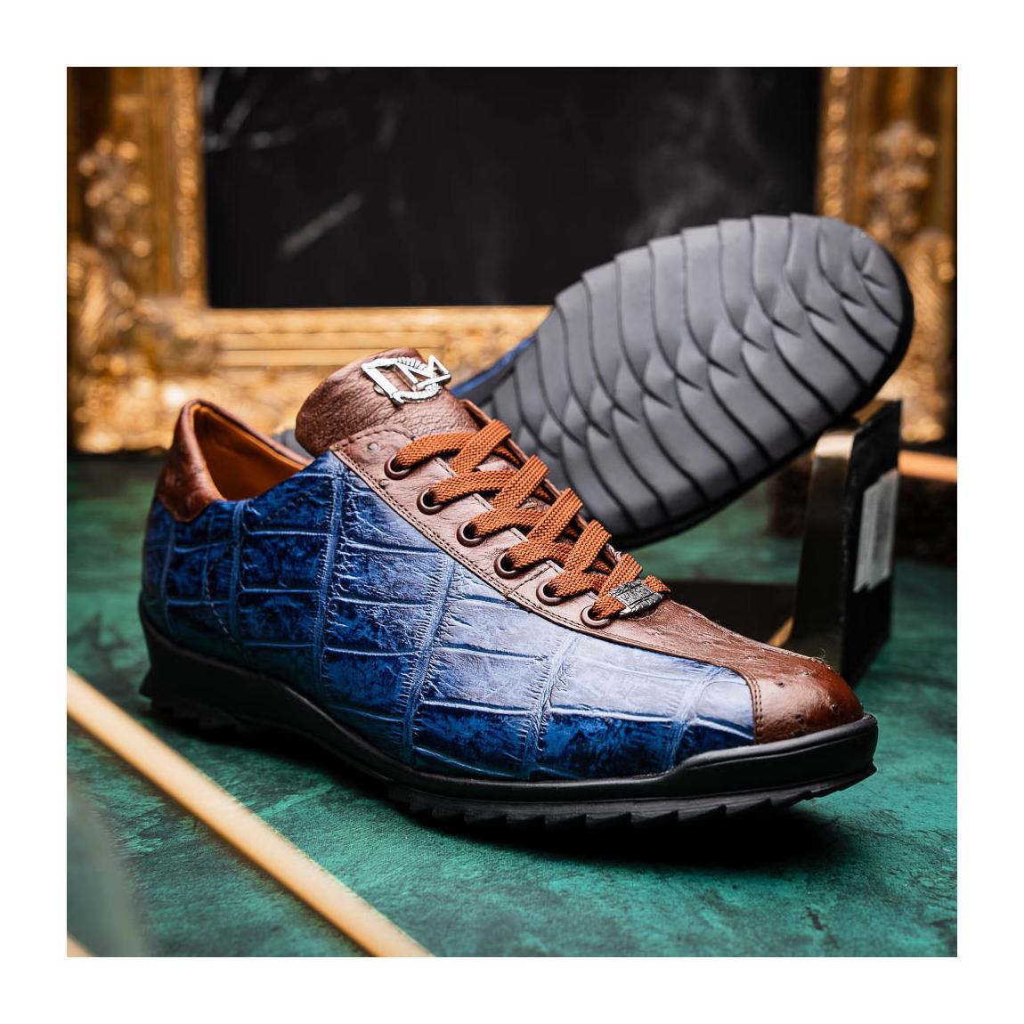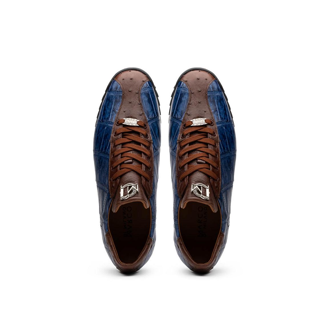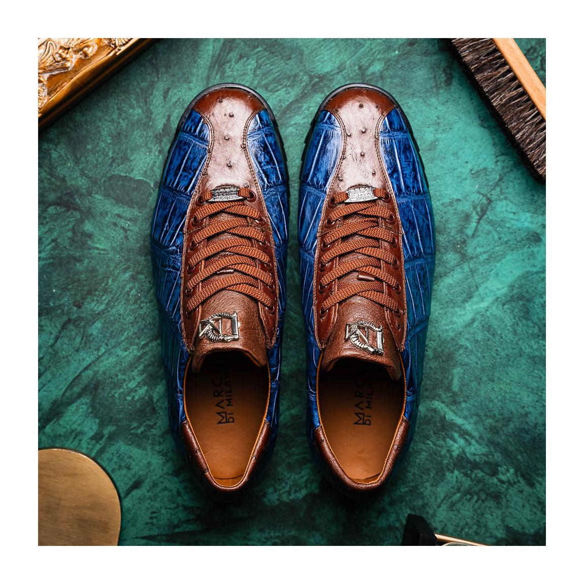 Marco Di Milano Saulo Men's Shoes Blue Jeans Exotic Ostrich / Alligator Casual Sneakers (MDM1045)