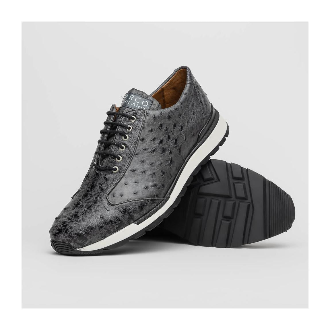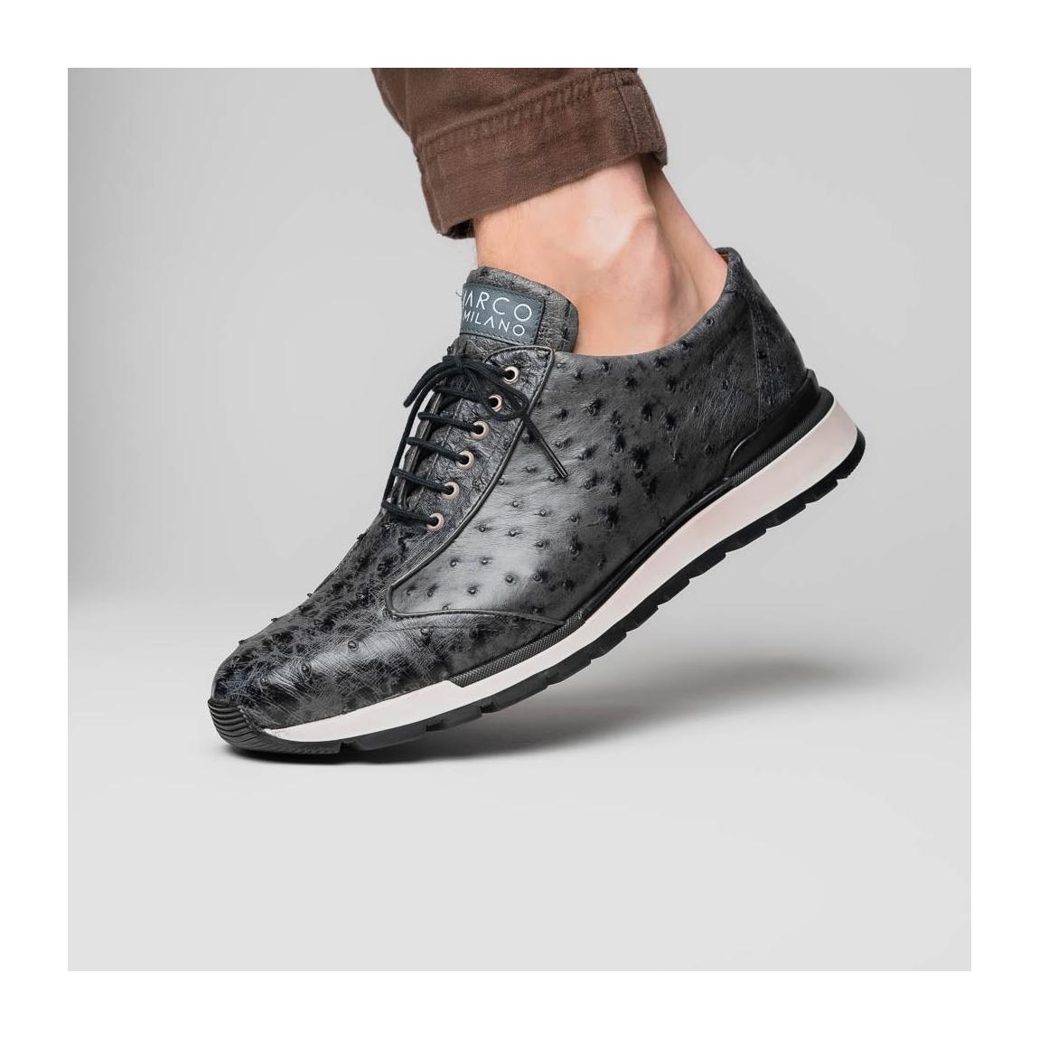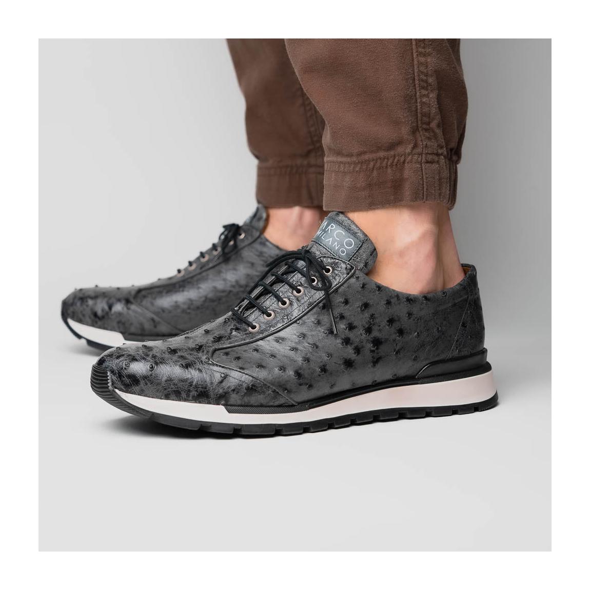 • Marco Di Milano Scanno Men's Shoes Antique Gray Exotic Ostich Casual Sneakers (MDM1050)