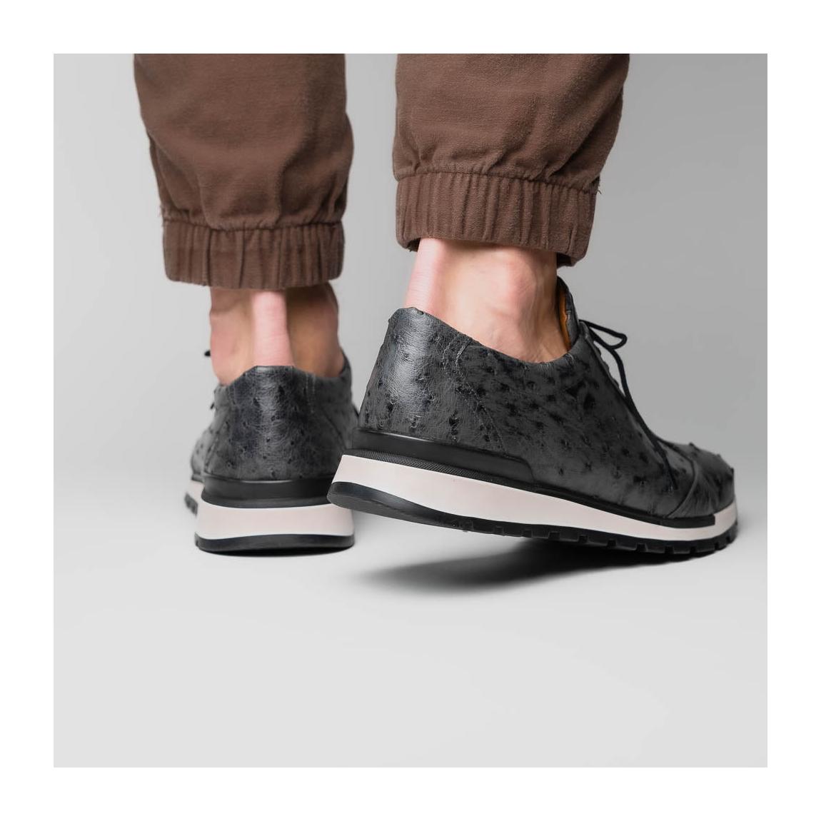 Marco Di Milano Scanno Men's Shoes Antique Gray Exotic Ostich Casual Sneakers (MDM1050)