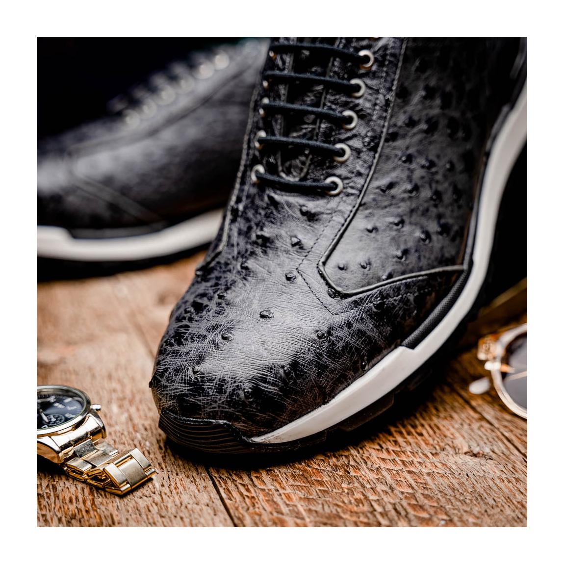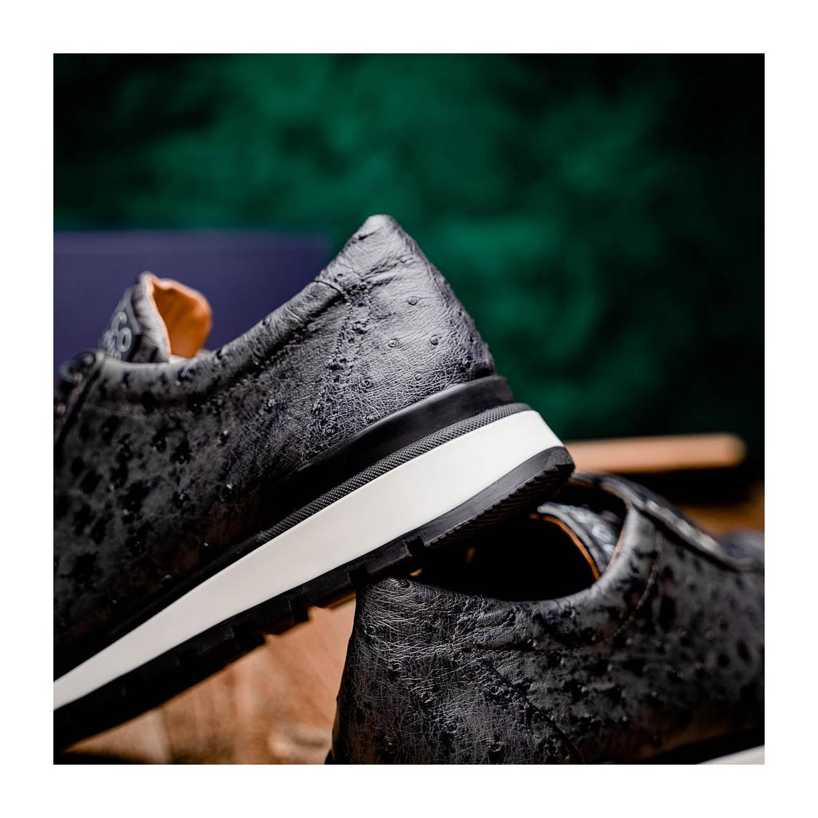 Introducing the SCANNO, a classic genuine ostrich quill fashion sneaker that combines timeless style with a sporty uptempo silhouette. With its hand-painted finish, the SCANNO is designed to provide a versatile and stylish option for various occasions.