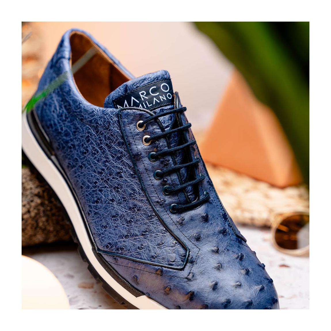 • Marco Di Milano Scanno Men's Shoes Antique Navy Exotic Ostich Casual Sneakers (MDM1053)