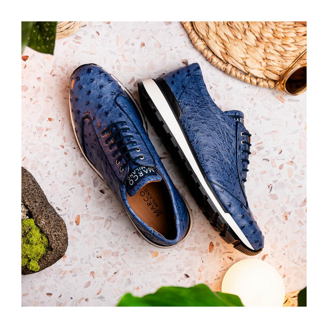 Marco Di Milano Scanno Men's Shoes Antique Navy Exotic Ostich Casual Sneakers (MDM1053)