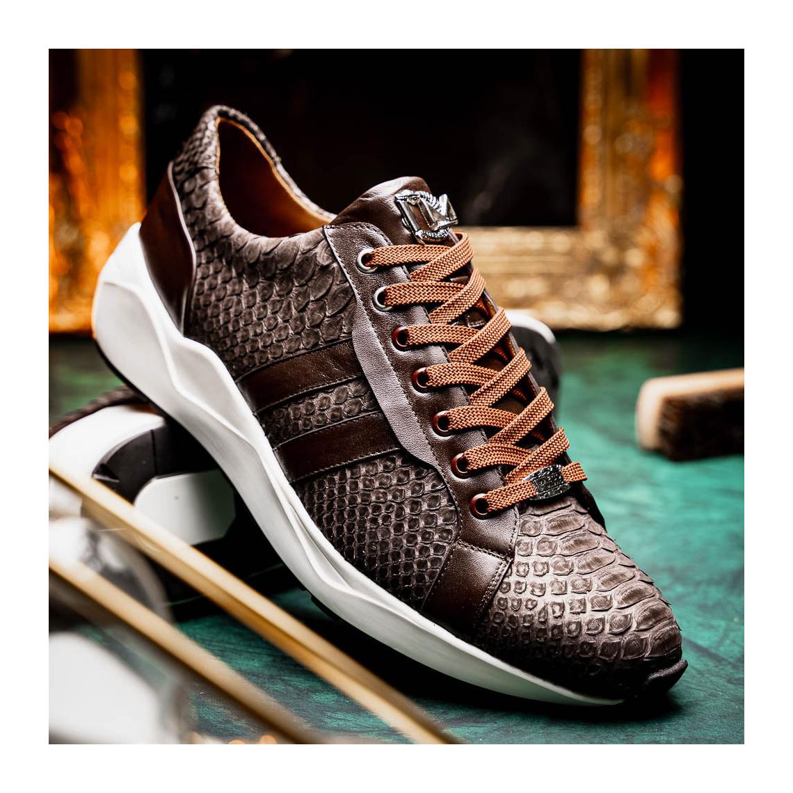 • Marco Di Milano Verona Men's Shoes Brown Python / Calfskin Fashion Sneakers (MDM1160)