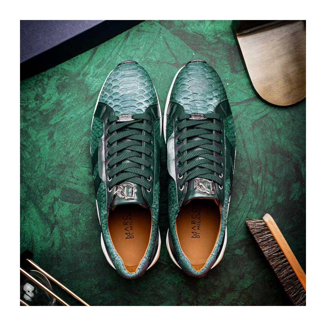 Marco Di Milano Verona Men's Shoes Green Exotic Python / Calfskin Fashion Sneakers (MDM1160)