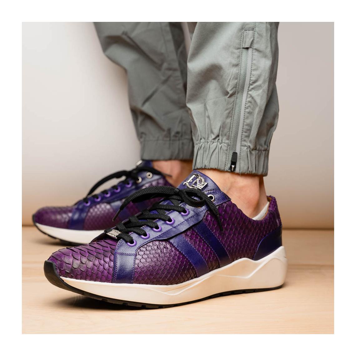 The VERONA is our street-inspired sueded python and classic calfskin fashion sneaker, featuring a minimal casual silhouette and a two-tone hand-painted finish. With full leather lining for comfortable wear and a grip rubber sole for long wear and steady walk, these sneakers are versatile enough to dress up with your favorite jeans, slacks, or shorts for a striking look.
