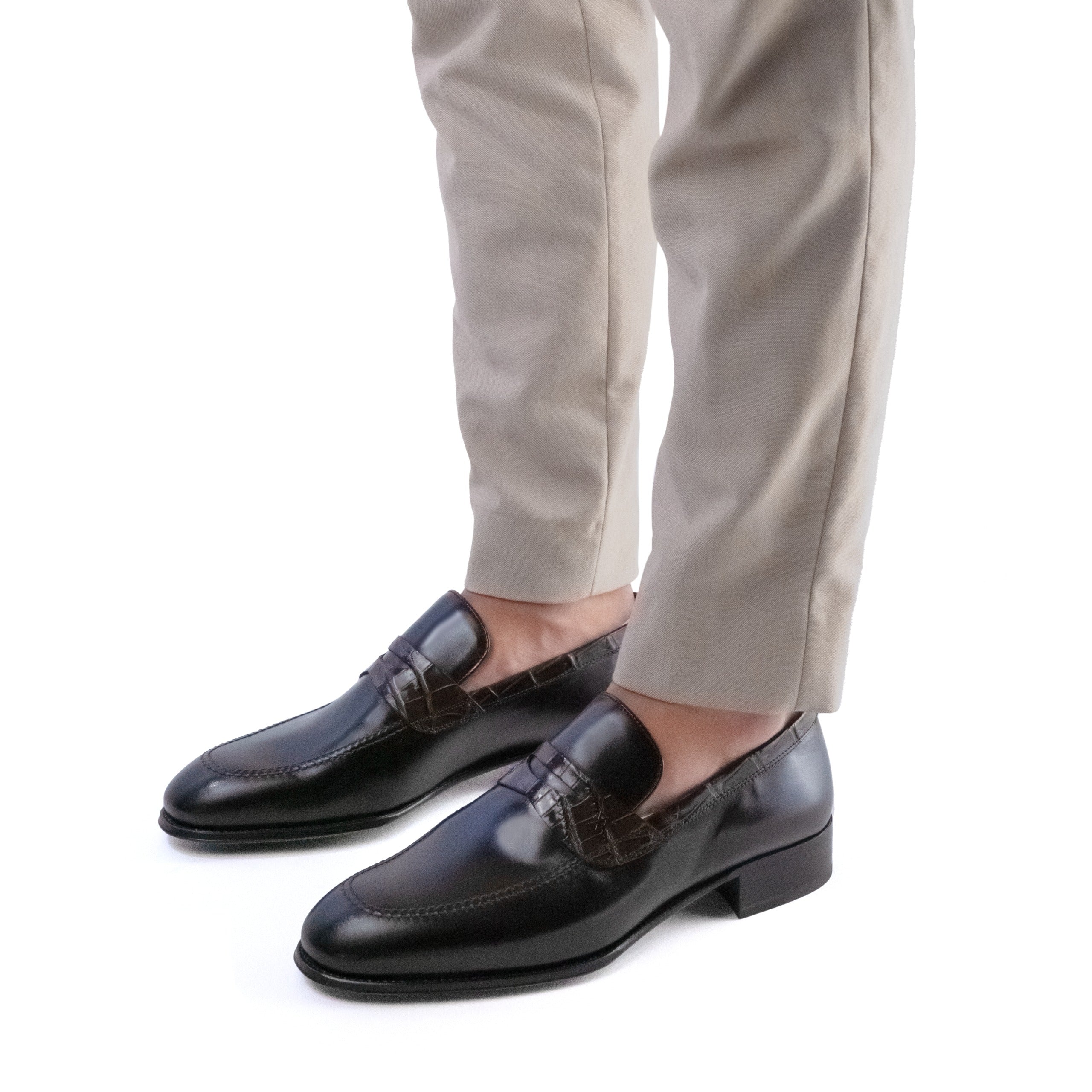 • Artioli Ulisse Men's Shoes Exotic Crocodile Skin & Calf-Skin Leather Penny Loafer (ART1183)