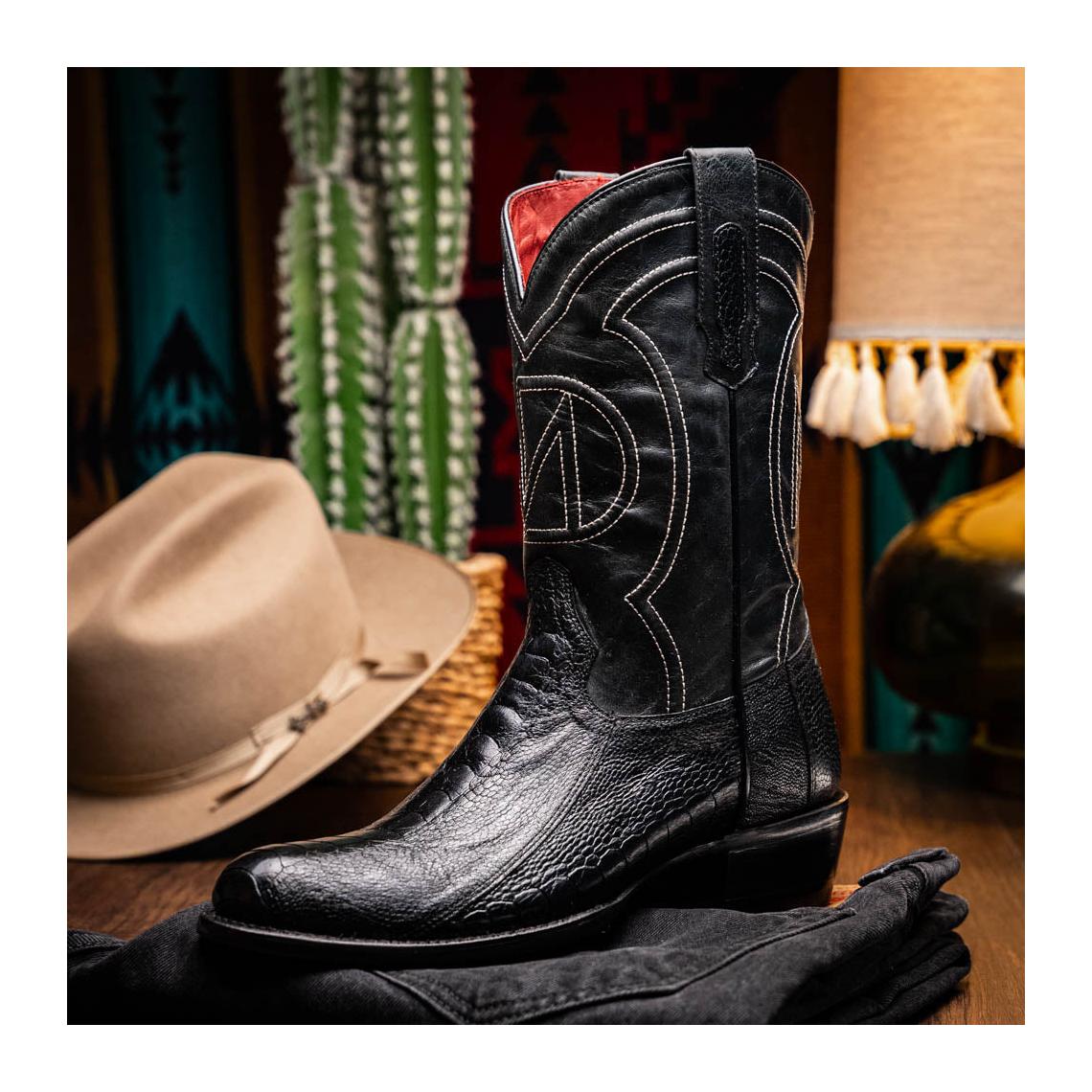 Marco Di Milano Denver Men's Shoes Black Exotic Ostrich Skin Cowboy Boot (MDM1215)