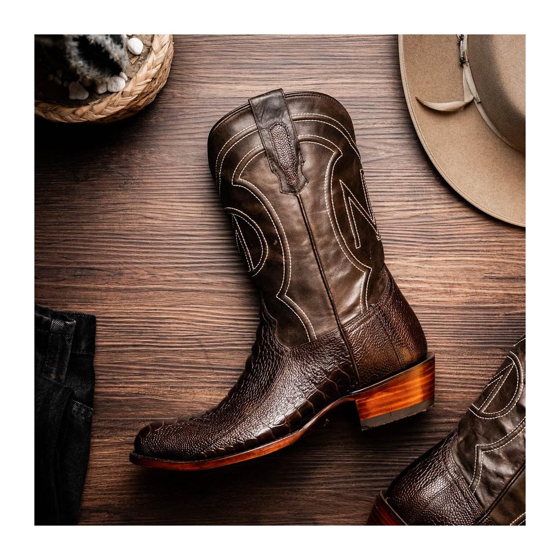 Marco Di Milano Denver Men's Shoes Brown Exotic Ostrich Skin Cowboy Boot (MDM1216)