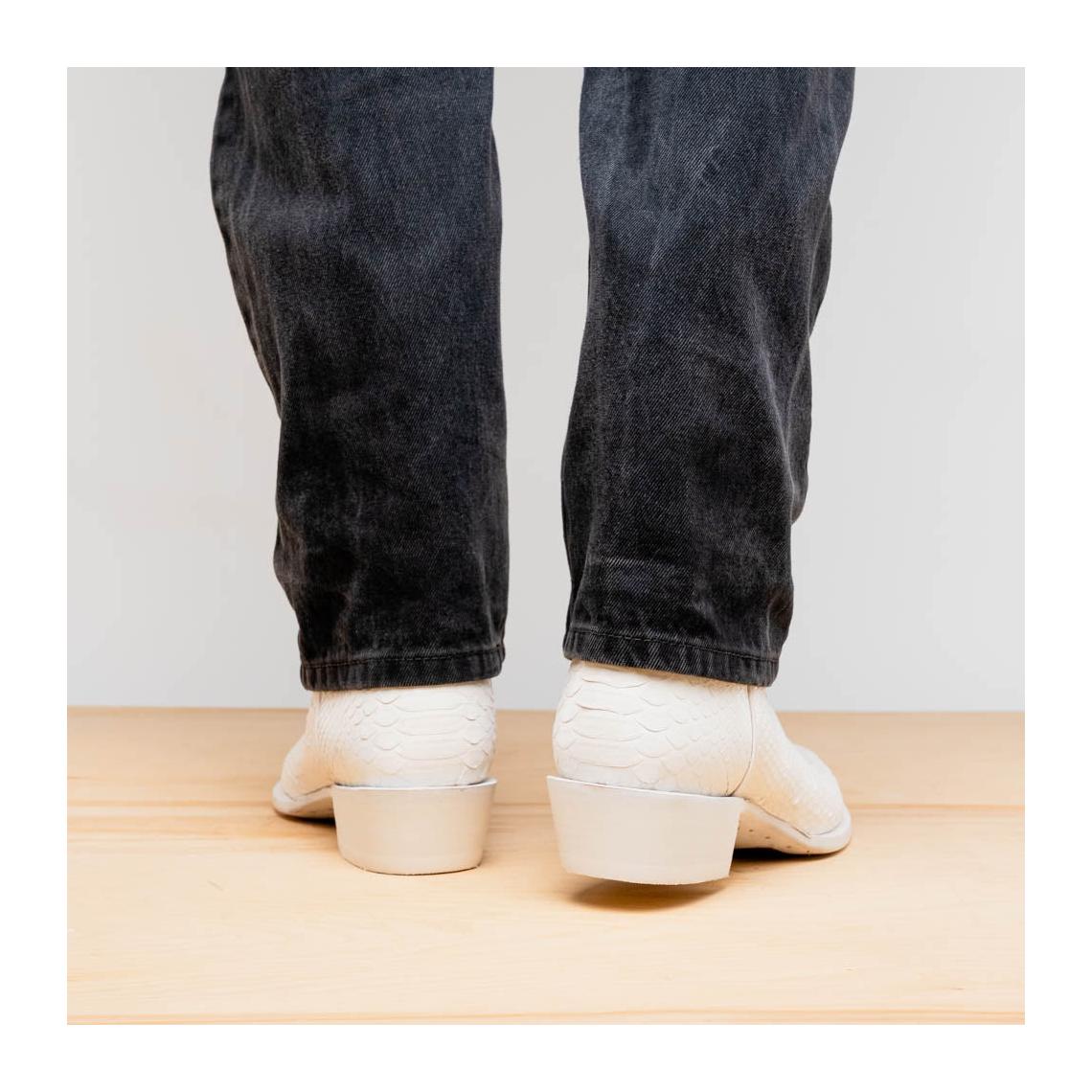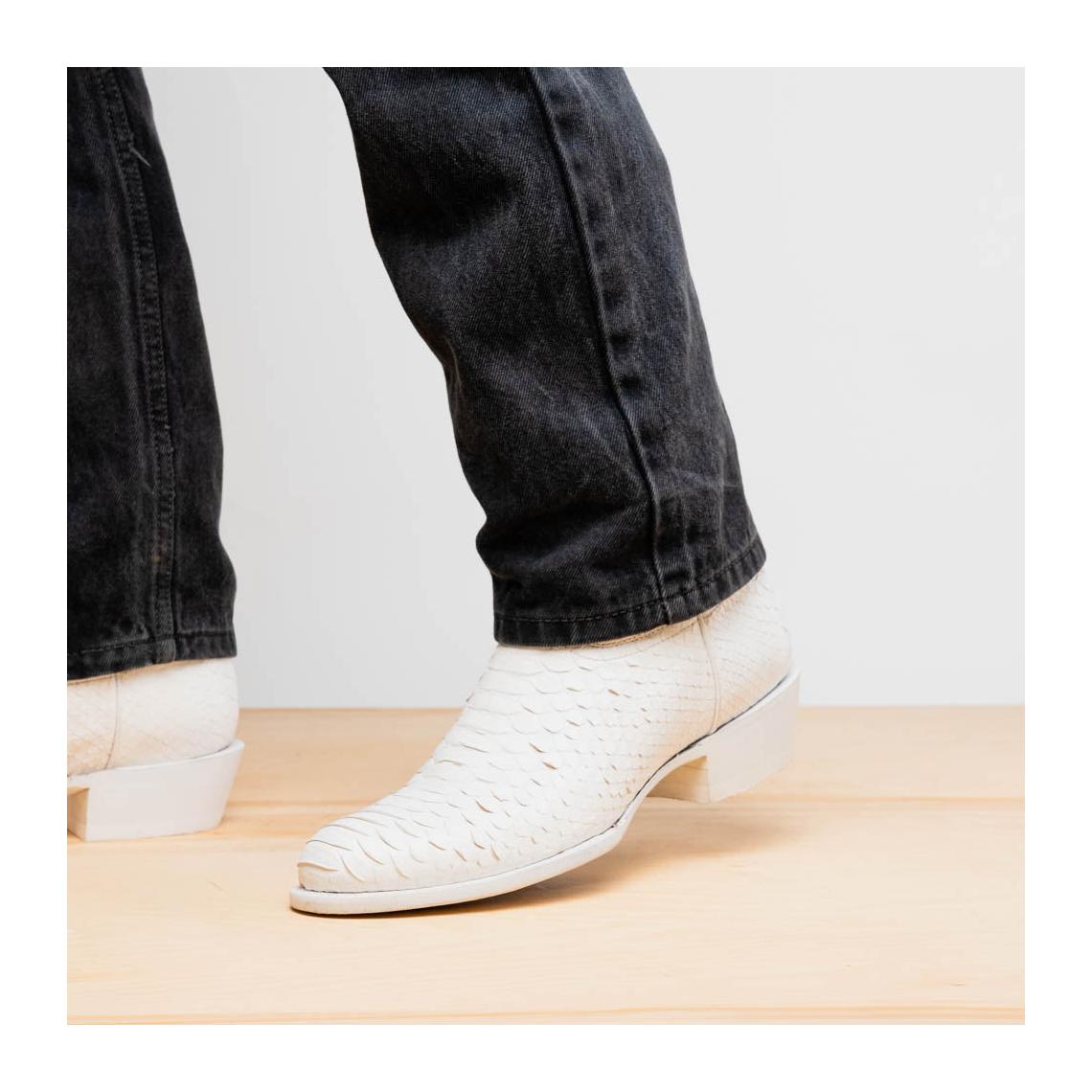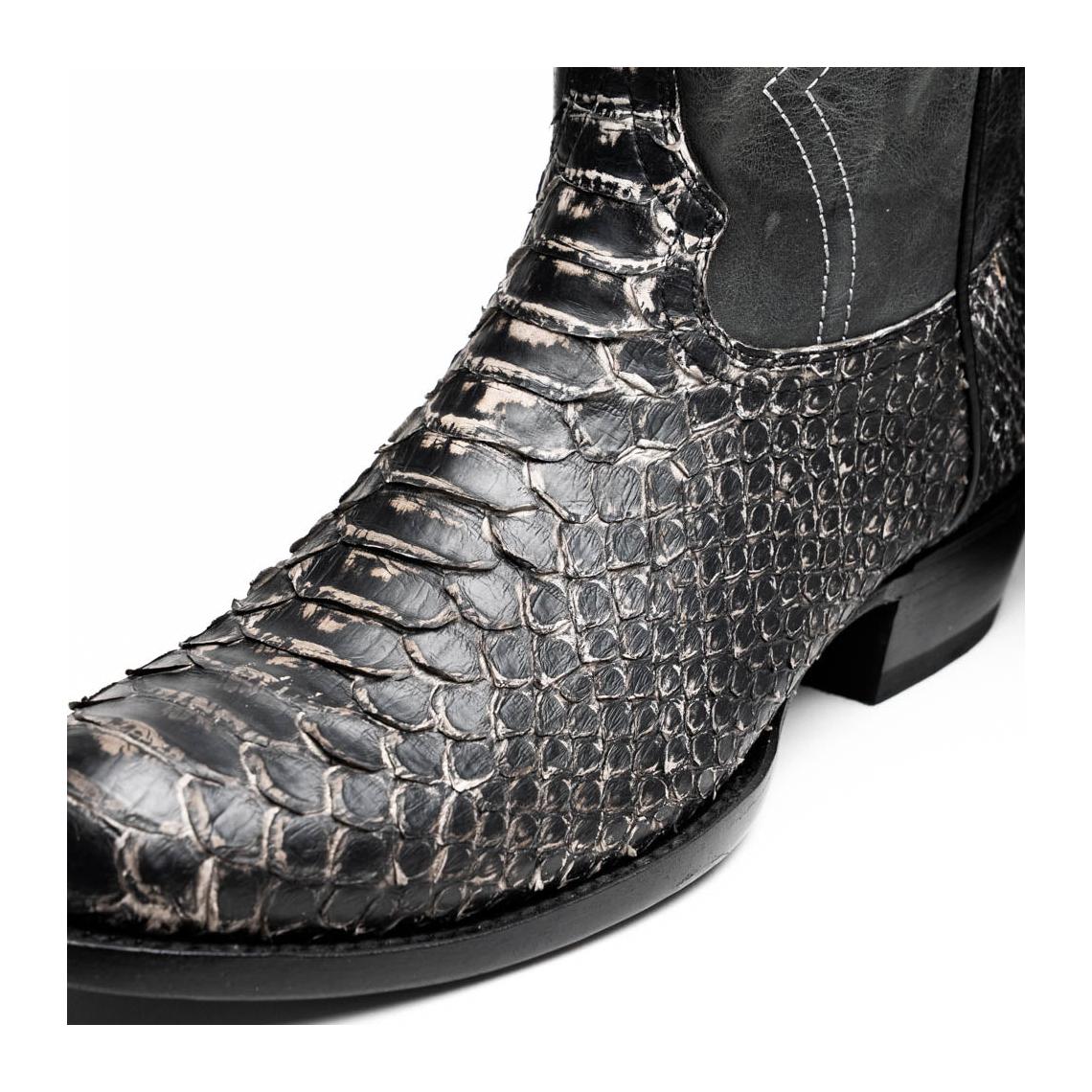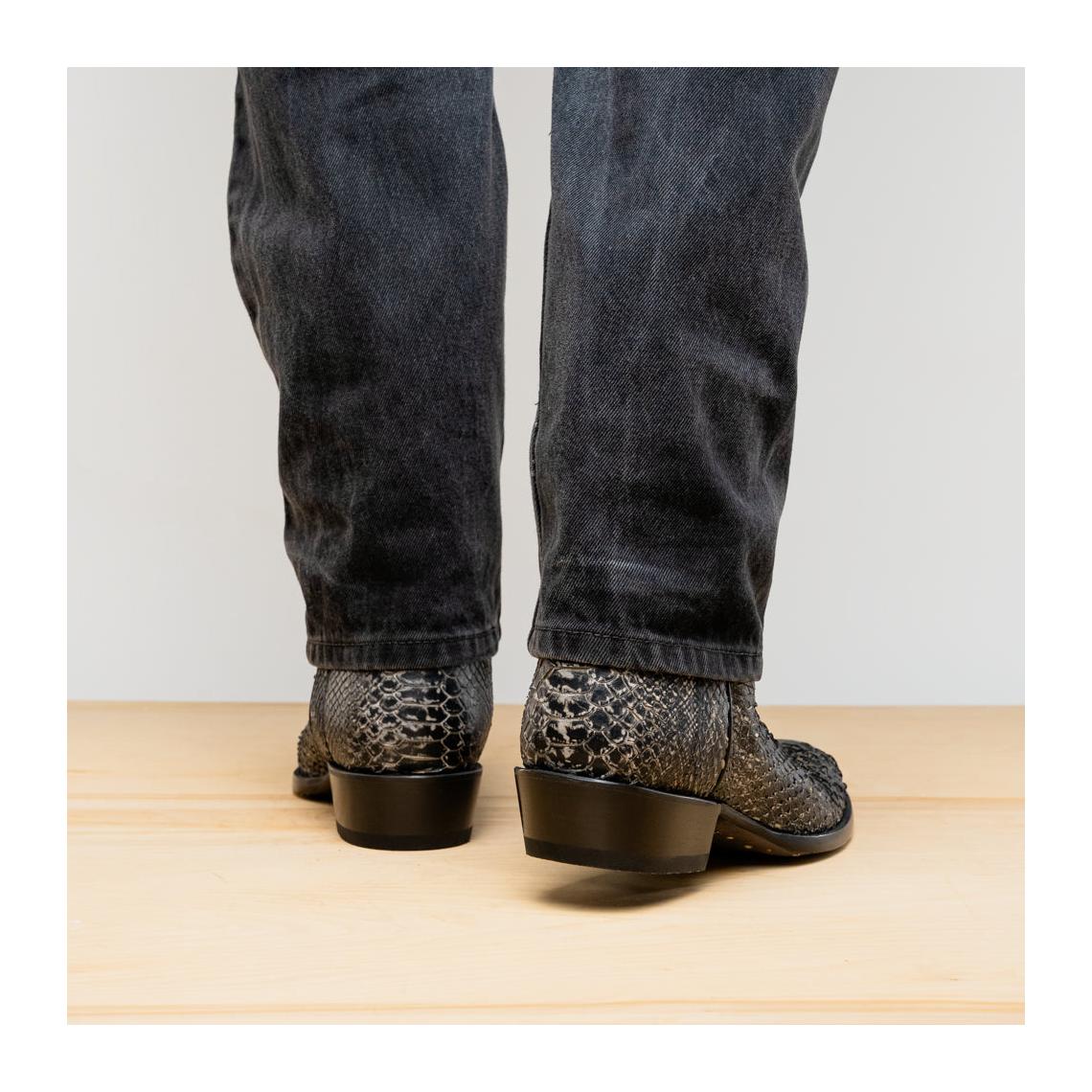 The KANSAS boot is a bold expression of authentic Western heritage elevated by luxury craftsmanship. Expertly handcrafted using genuine Python skin for the vamp and rich full-grain leather on the shaft, this piece delivers timeless cowboy attitude with a refined and modern edge. The contrast stitching and signature red interior lining add a distinctive flair—designed to turn heads whether you're on the ranch or the city streets.