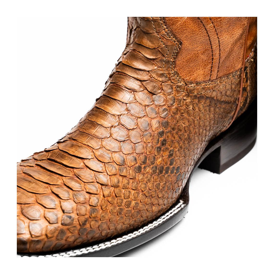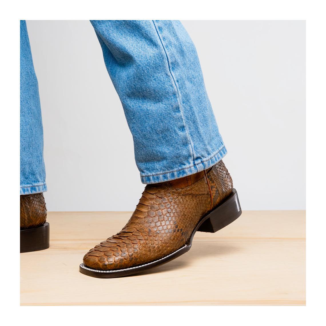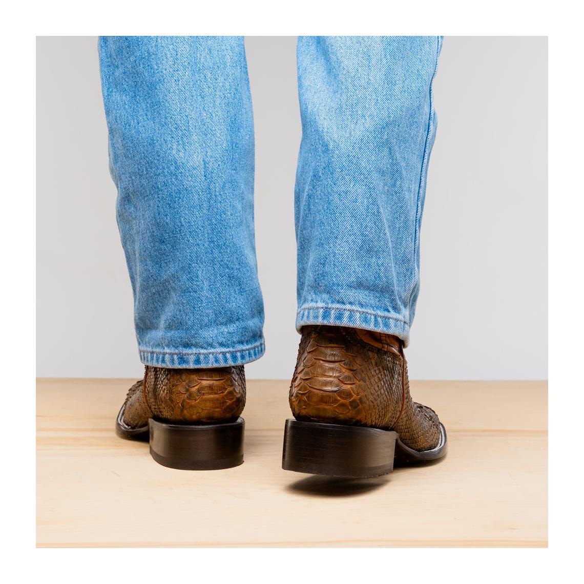 The MISSOURI boot captures the spirit of the West through bold design, master craftsmanship, and premium exotic materials. Handcrafted using genuine Python skin on the vamp and full-grain leather on the shaft, it delivers rich texture and visual contrast. The defining square toe adds a confident, modern twist to the classic cowboy profile, while the signature red leather lining brings a refined interior finish.