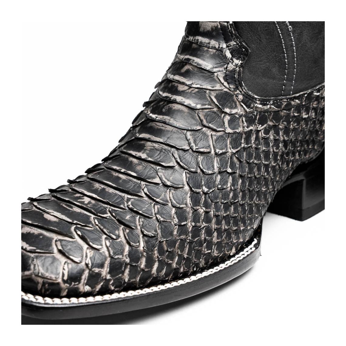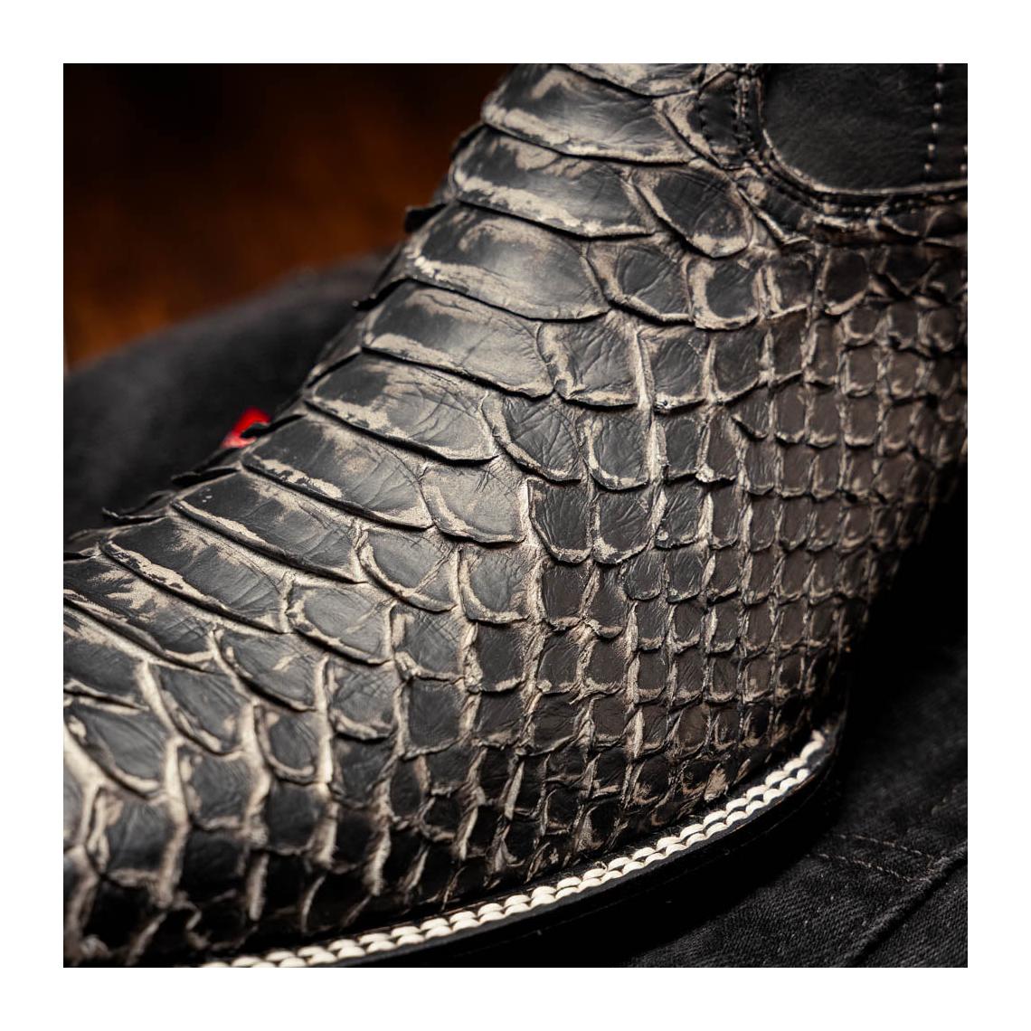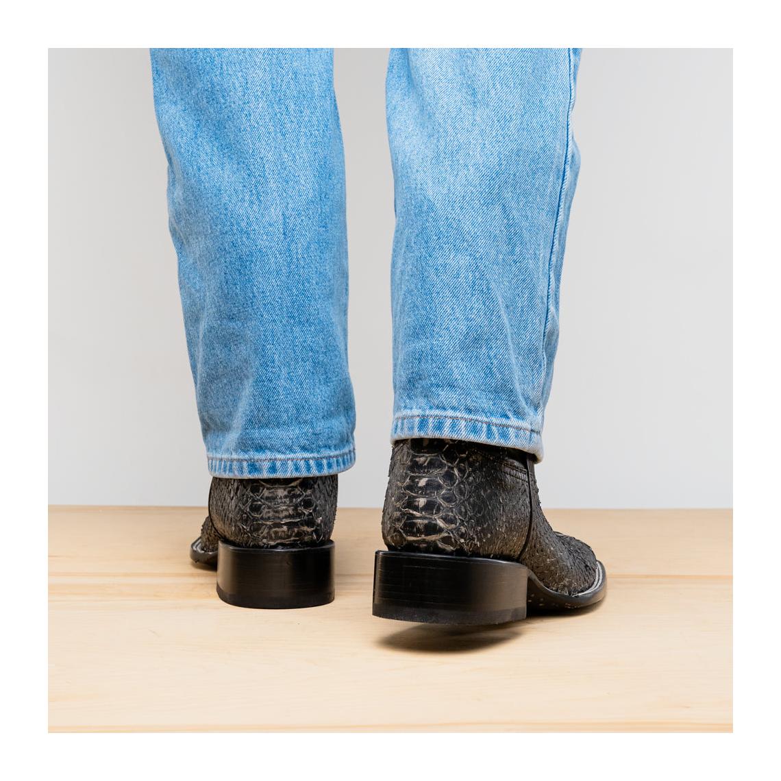 The MISSOURI boot captures the spirit of the West through bold design, master craftsmanship, and premium exotic materials. Handcrafted using genuine Python skin on the vamp and full-grain leather on the shaft, it delivers rich texture and visual contrast. The defining square toe adds a confident, modern twist to the classic cowboy profile, while the signature red leather lining brings a refined interior finish.