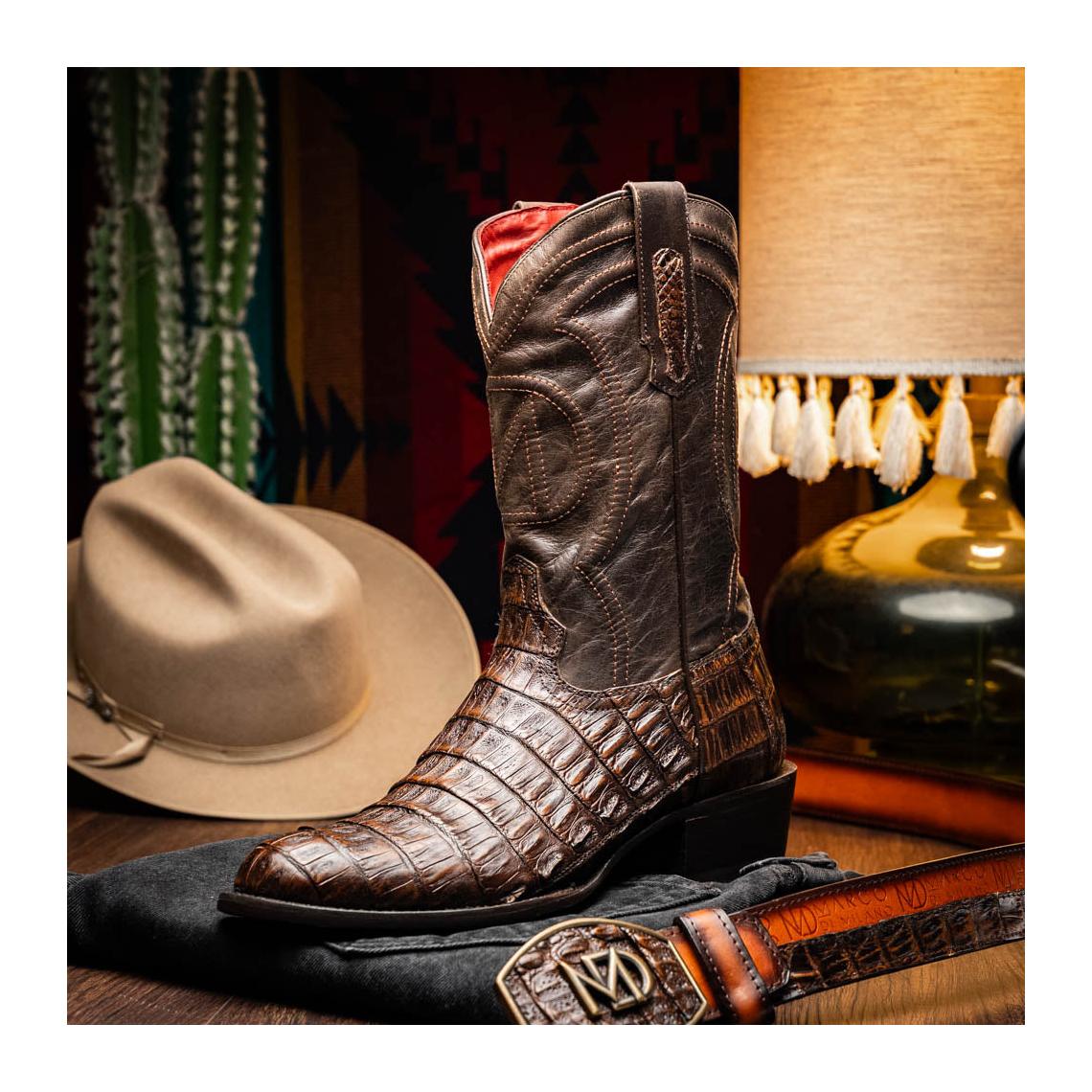 Marco Di Milano Phoenix Men's Shoes Aged Brown Exotic Crocodile Skin Cowboy Boot (MDM1232)