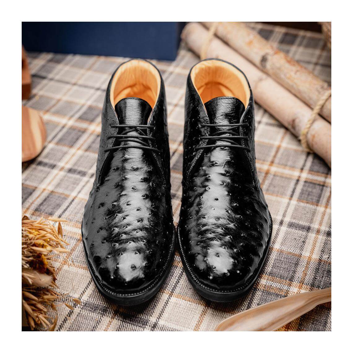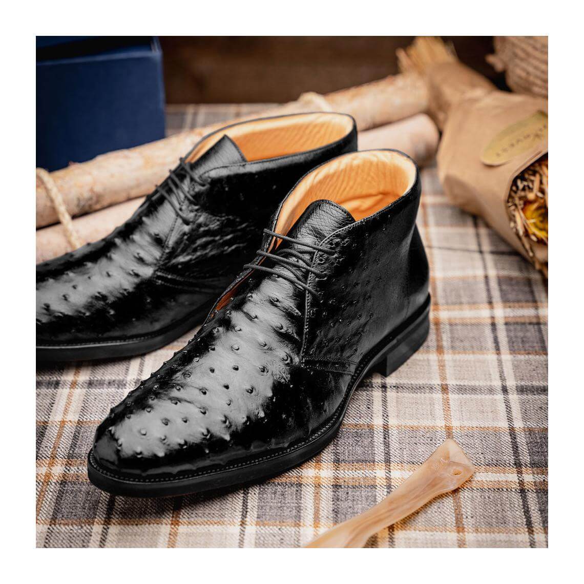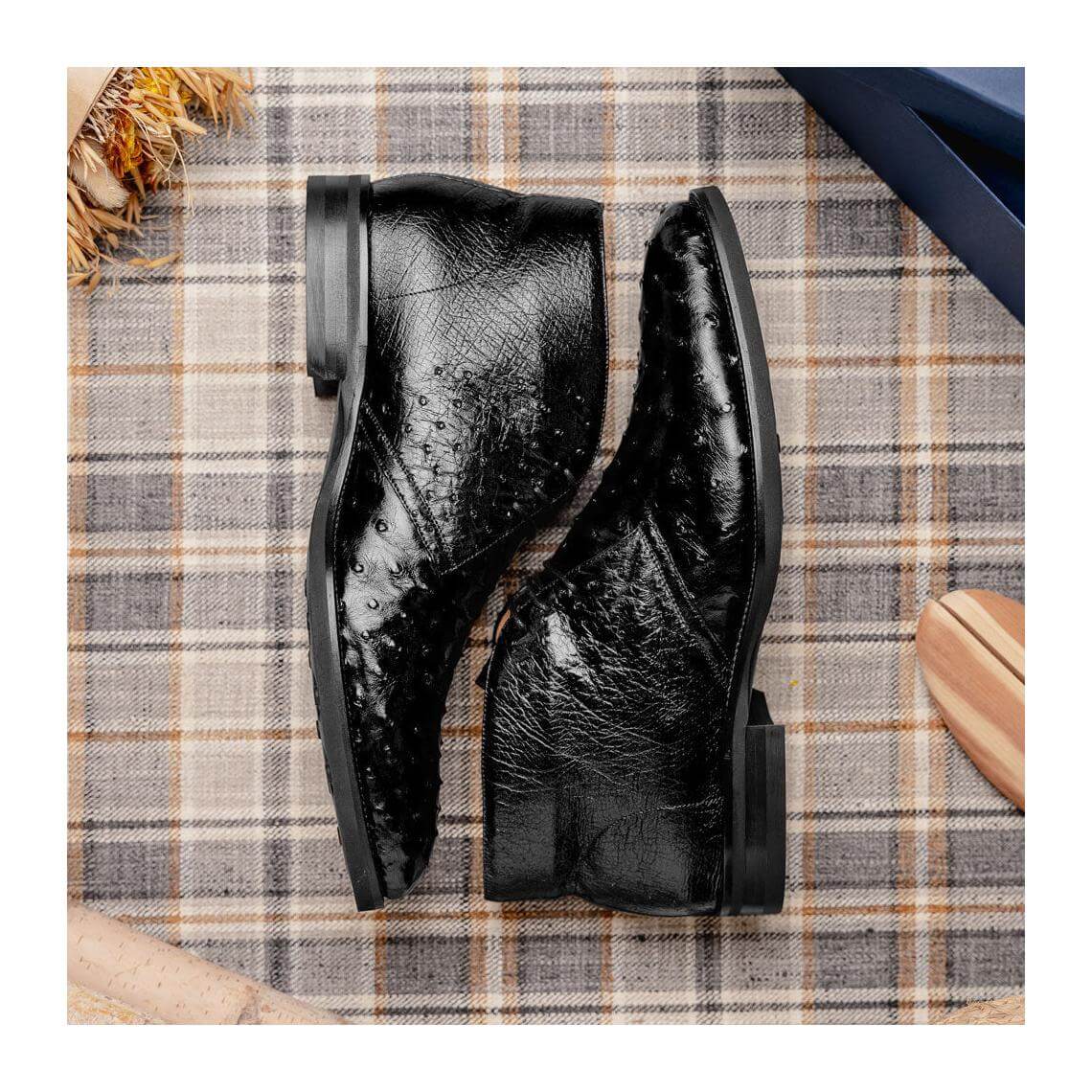 • Zelli Italia Marco Men's Shoes Black Ostrich Skin Chukka Boot (ZEL1069)