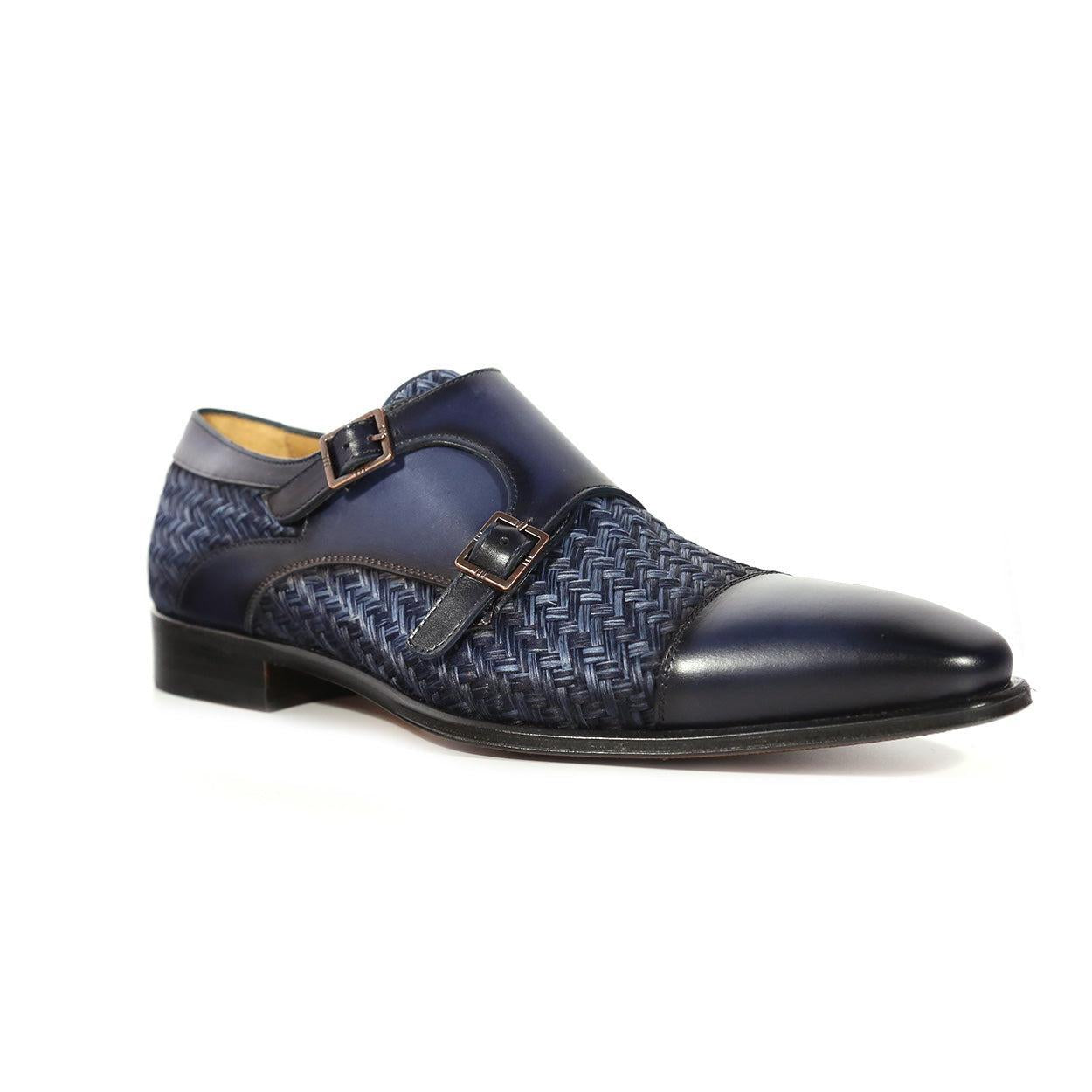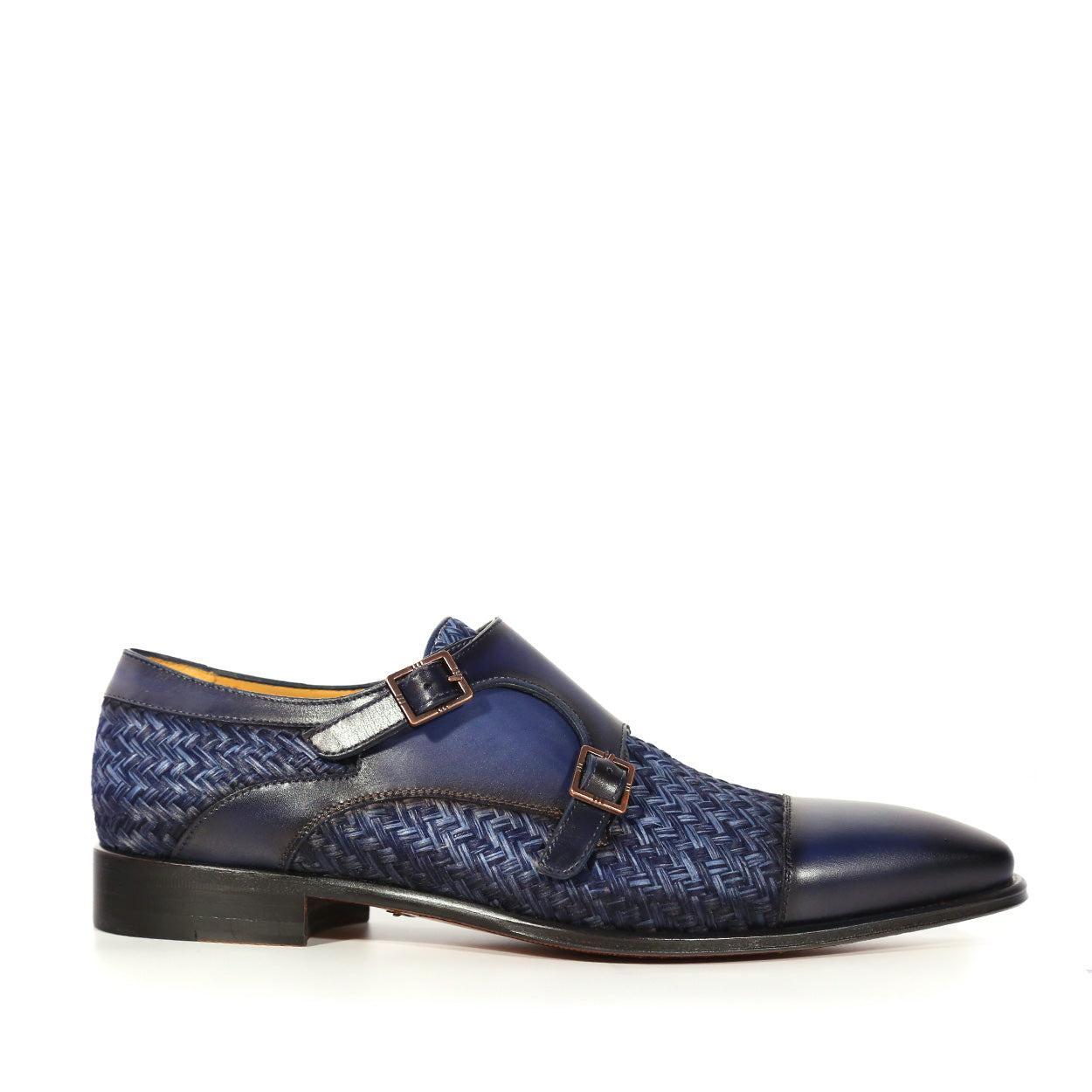 • Mezlan 20688 Men's Shoes Fabric / Calf-Skin Leather Dress/ Formal Monk-Straps Loafers (MZ3623)