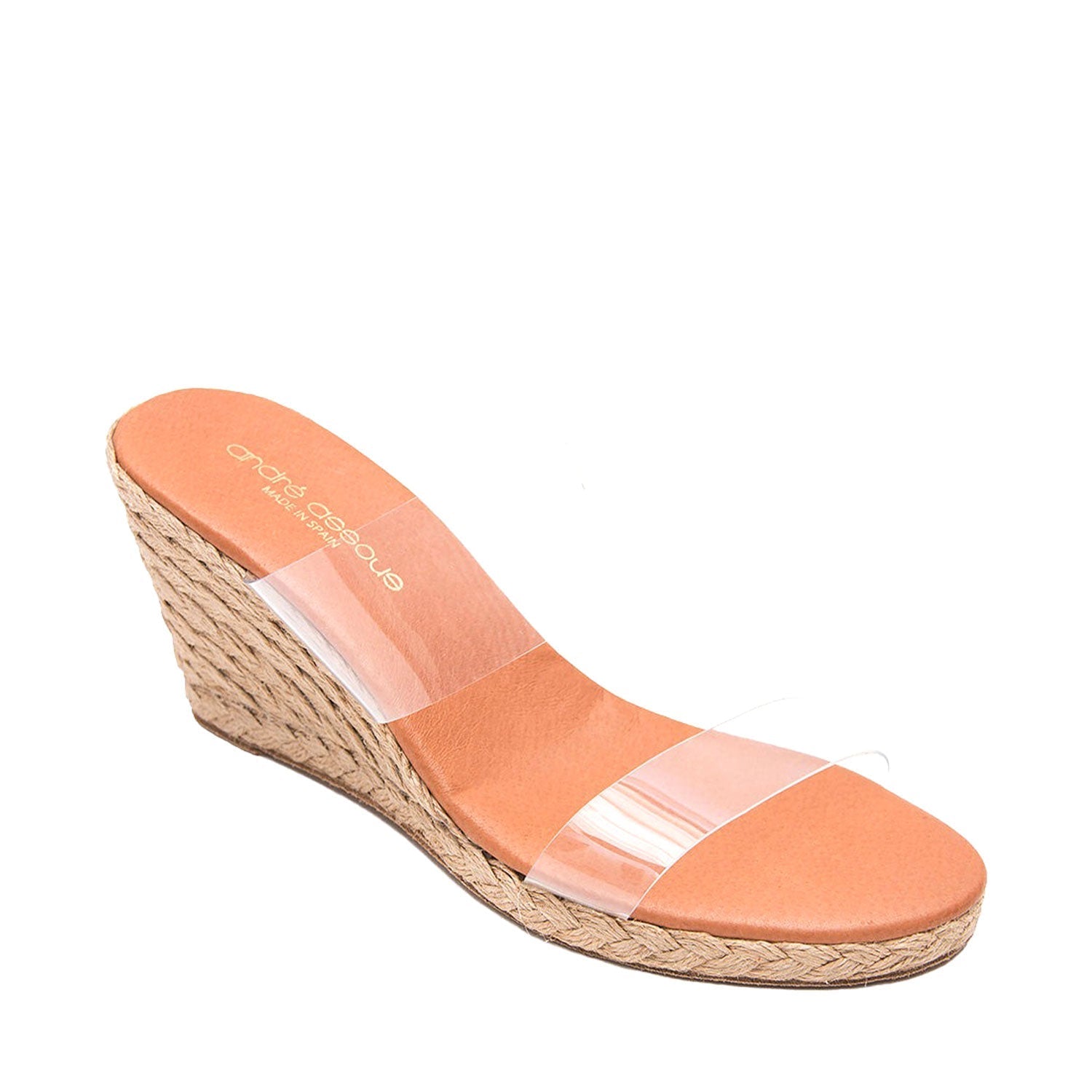 Transparent straps add an edgy upgrade to the Assous classic jute-wrapped espadrille featuring a supportive footbed with extra cushioning.
