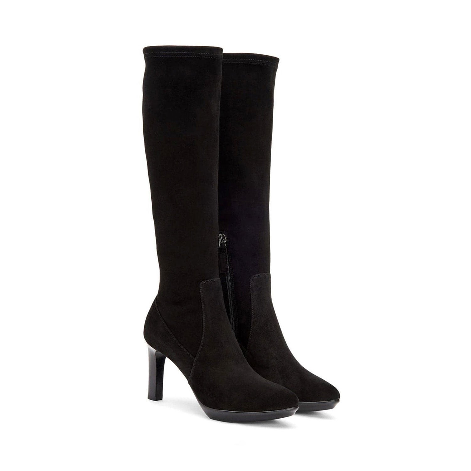 Together, a hint of stretch and flexible platform soles bring ease of movement and total comfort to the Rhumba tall boot. Crafted in soft suede, it features an almond-toe silhouette and stacked heel. Designed in a chic choice of neutral hues, it’s a standout style to mix and match.