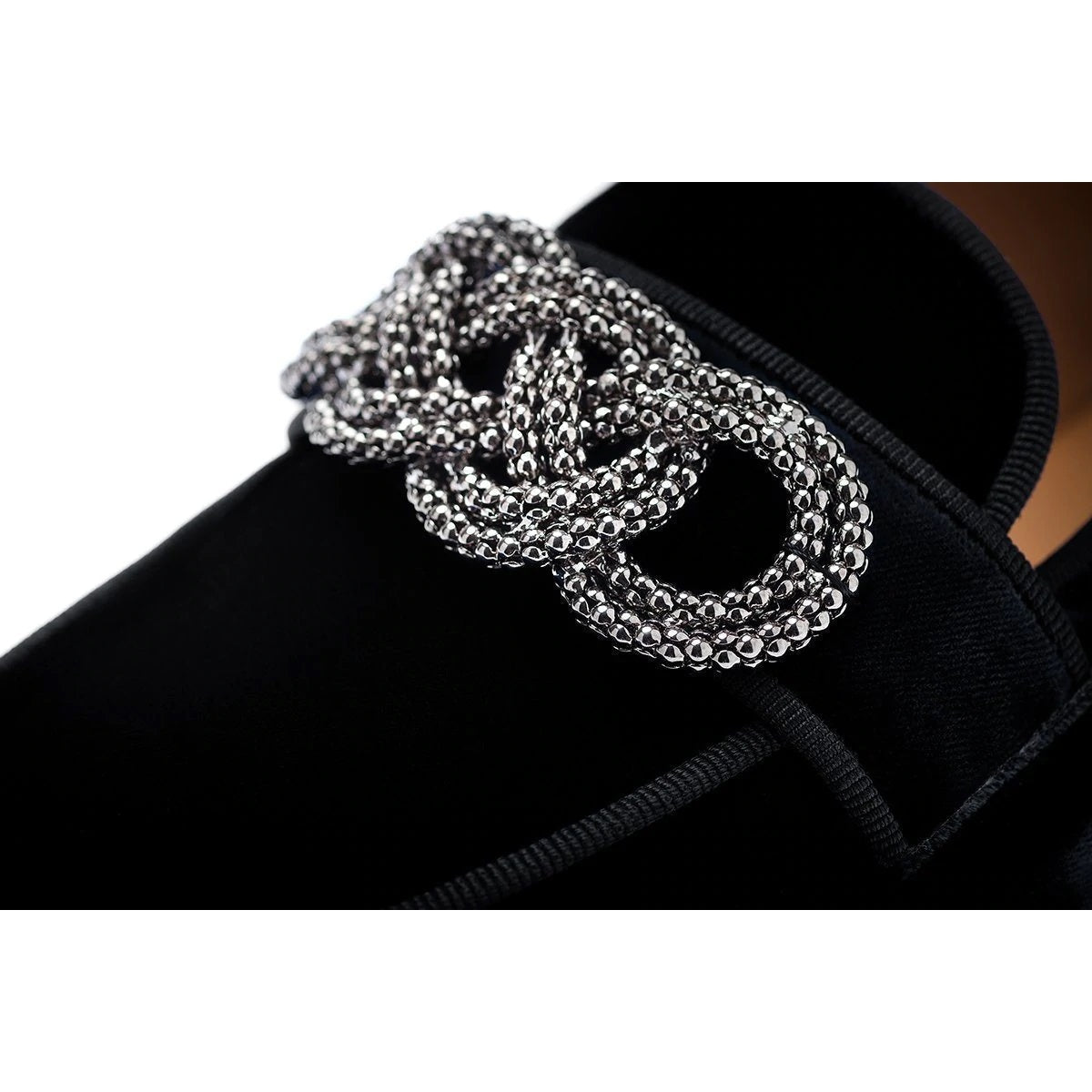SUPERGLAMOUROUS Morosino Men's Shoes Black Velour Velvet Slipper Loafers (SPGMS1033)