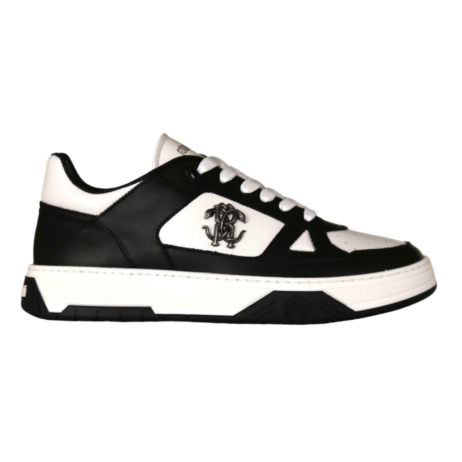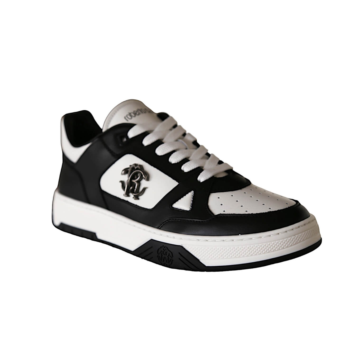 Roberto Cavalli 22536-B Men's Shoes Black & White Calf-Skin Leather Casual Sneakers (RC1004)