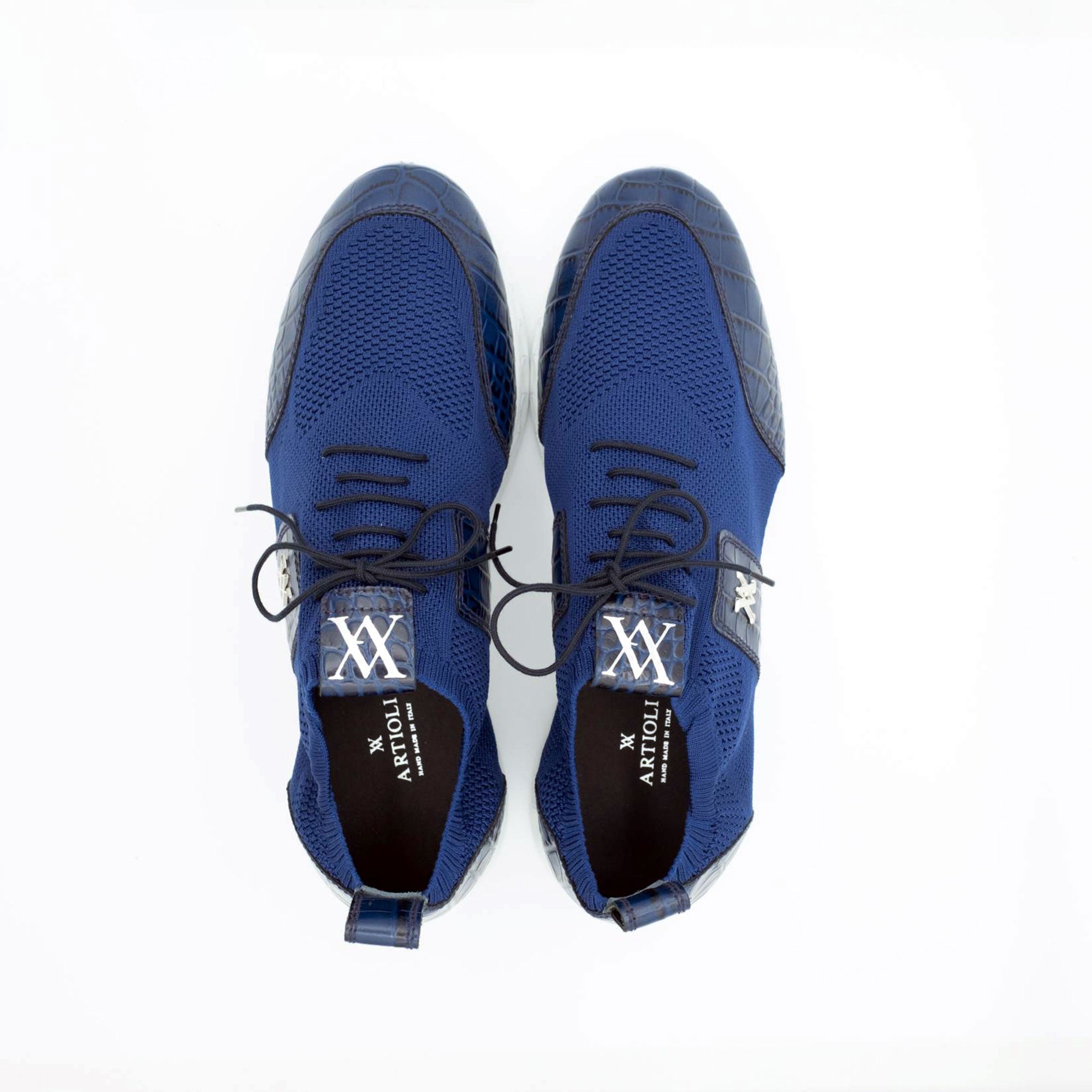 Artioli Lamar Men's Luxury Italian Shoes Fabric / Crocodile-Skin Sneaker (ART1130)