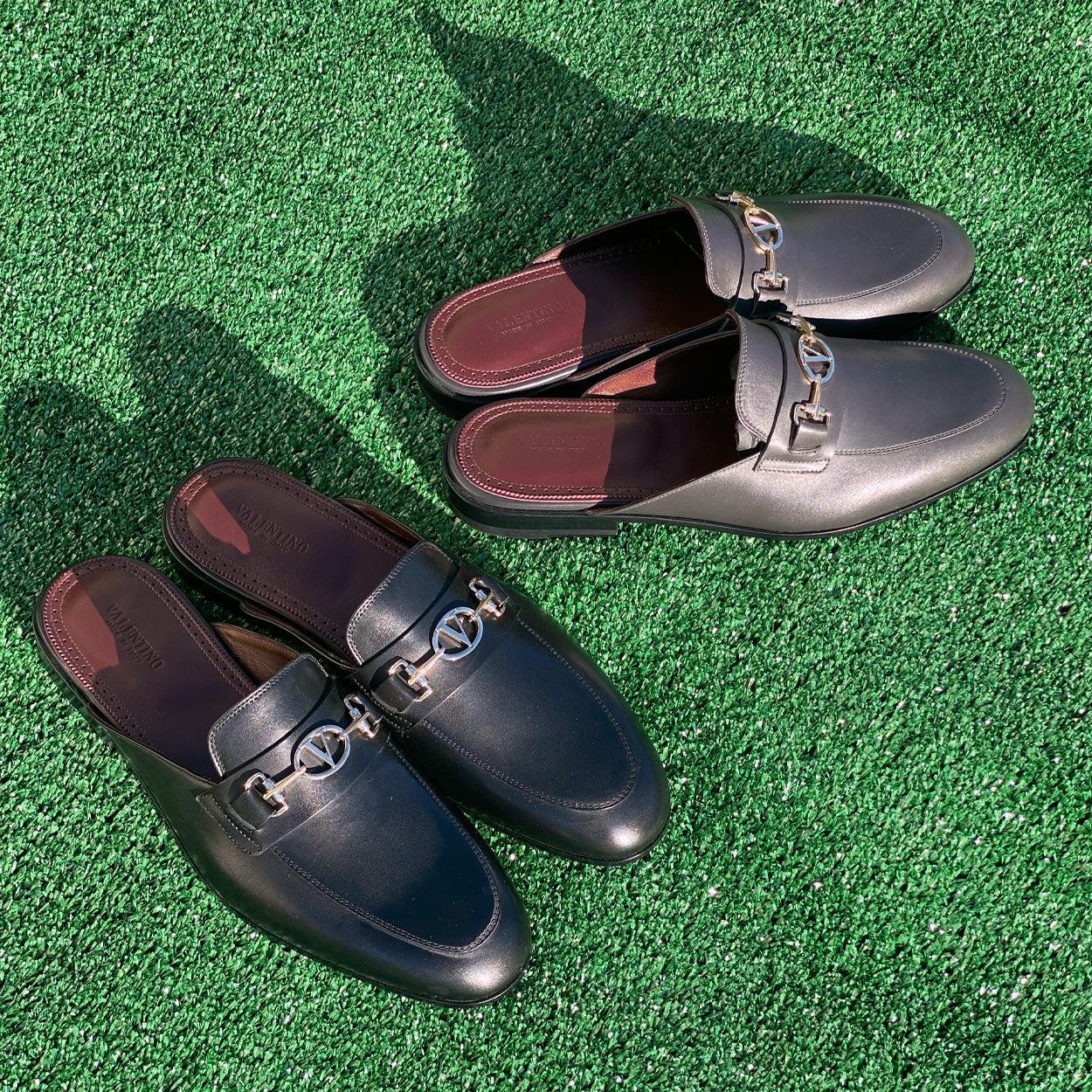 • Valentino 19700/M Men's Shoes Gray Calf-Skin Leather Slipper Mules (VAL1001)