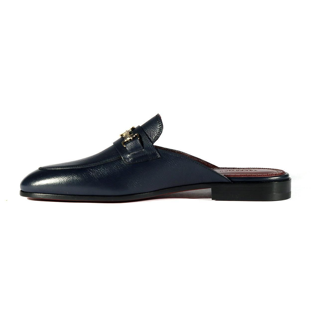Valentino 19700/M Men's Shoes Navy Blue Calf-Skin Leather Slipper Mules (VAL1002)