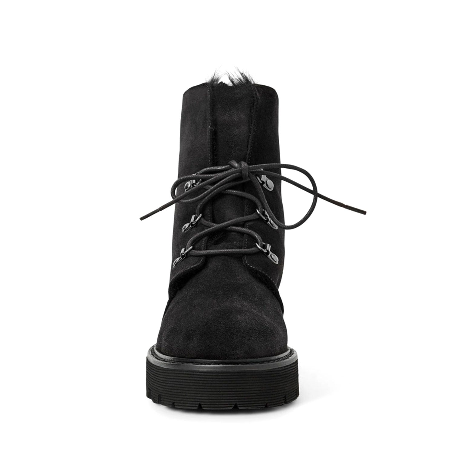 A customizable cuff makes the Eva a truly remarkable bootie - wear yours up or rolled over depending on your pant length. Modeled after hiker styles, they’re crafted from water-resistant suede that’s designed to withstand the elements and is fully lined in faux shearling for added warmth. A lug sole provides superior traction while the lace closure allows you to adjust the fit.