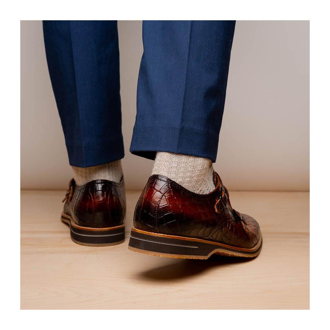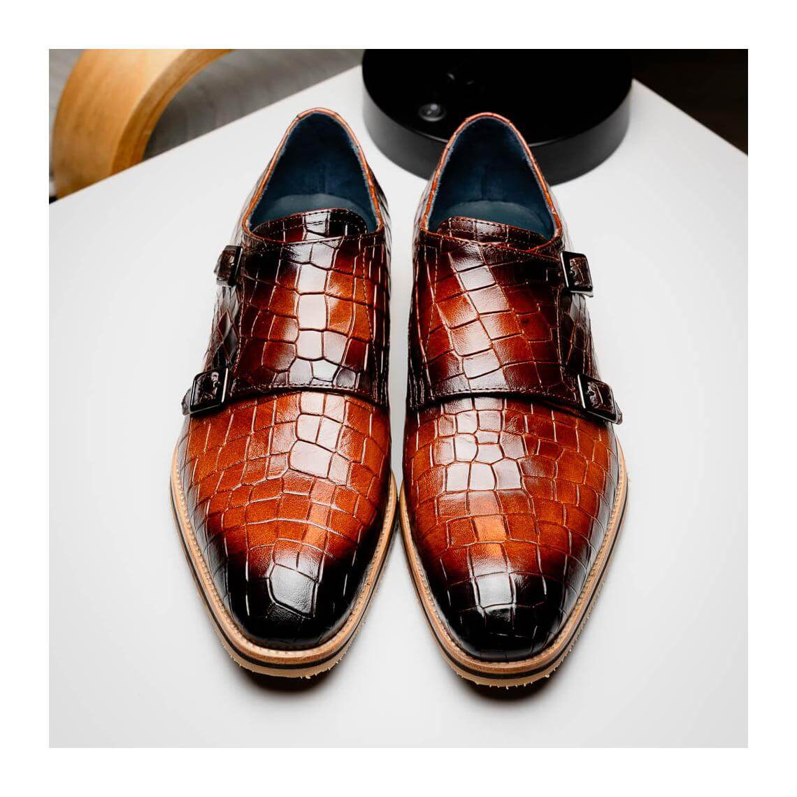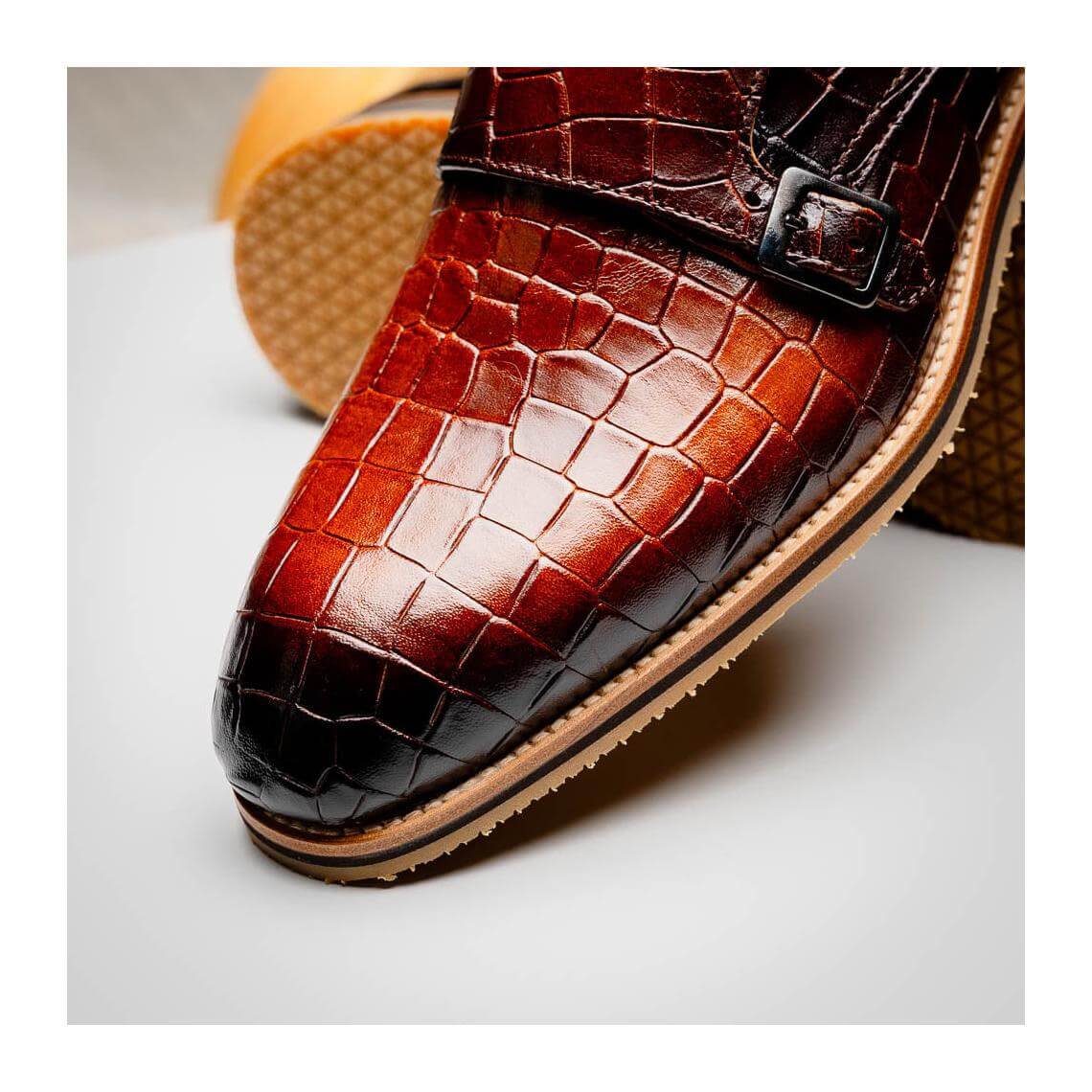 Zelli Italia Legerra Men's Shoes Cognac Crocodile Print Calf-Skin Leather Monk-Strap (ZEL1074)
