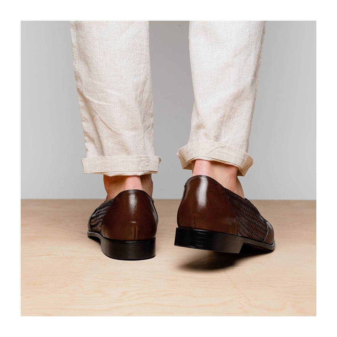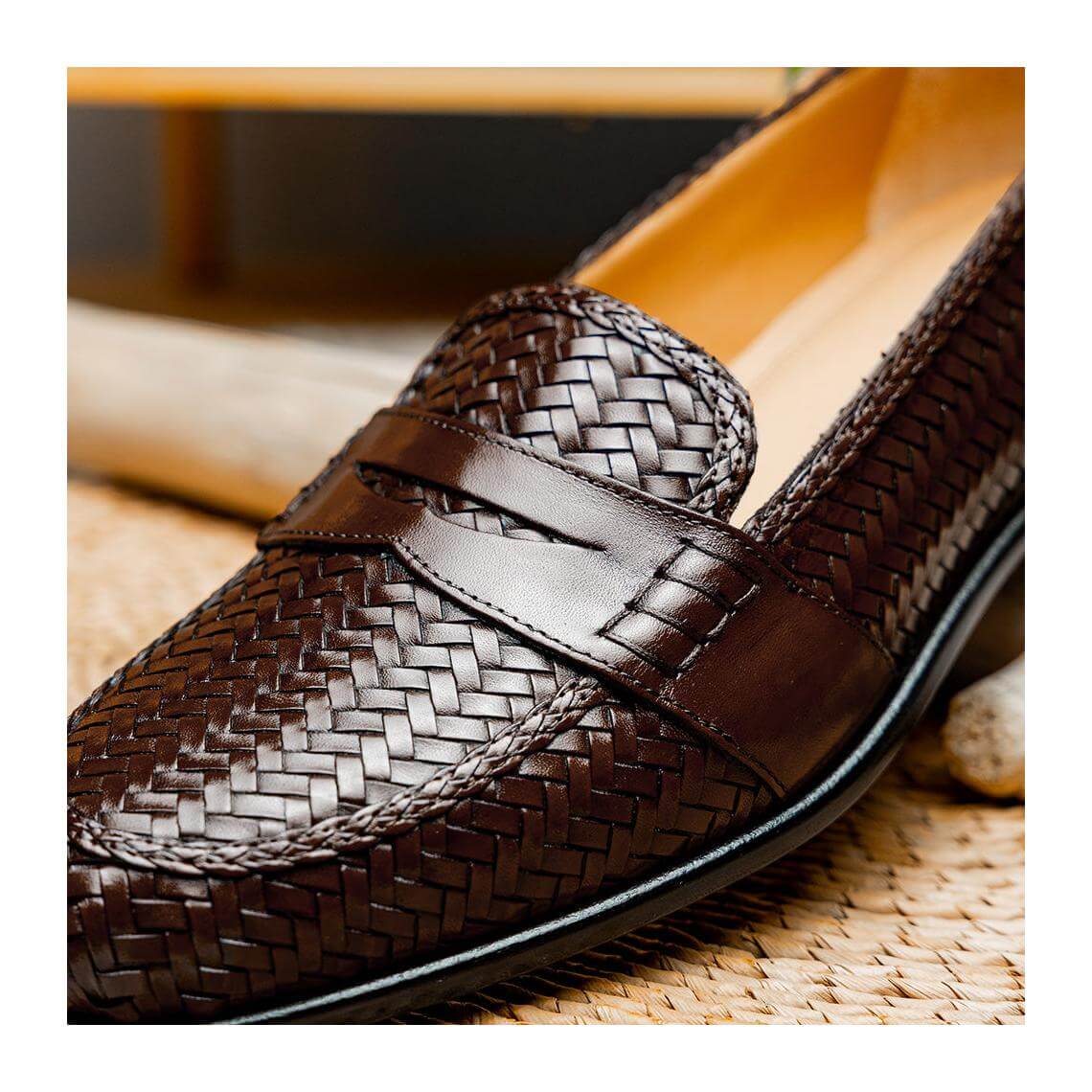 Zelli Italia Nicola Men's Shoes Brown Woven Calf-Skin Leather Penny Loafer (ZEL1021)