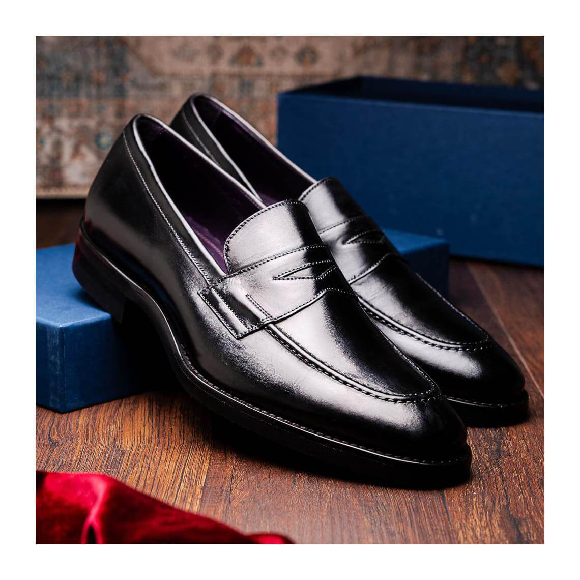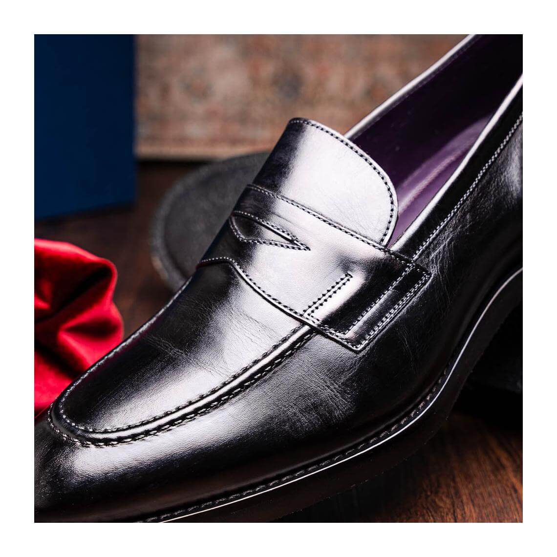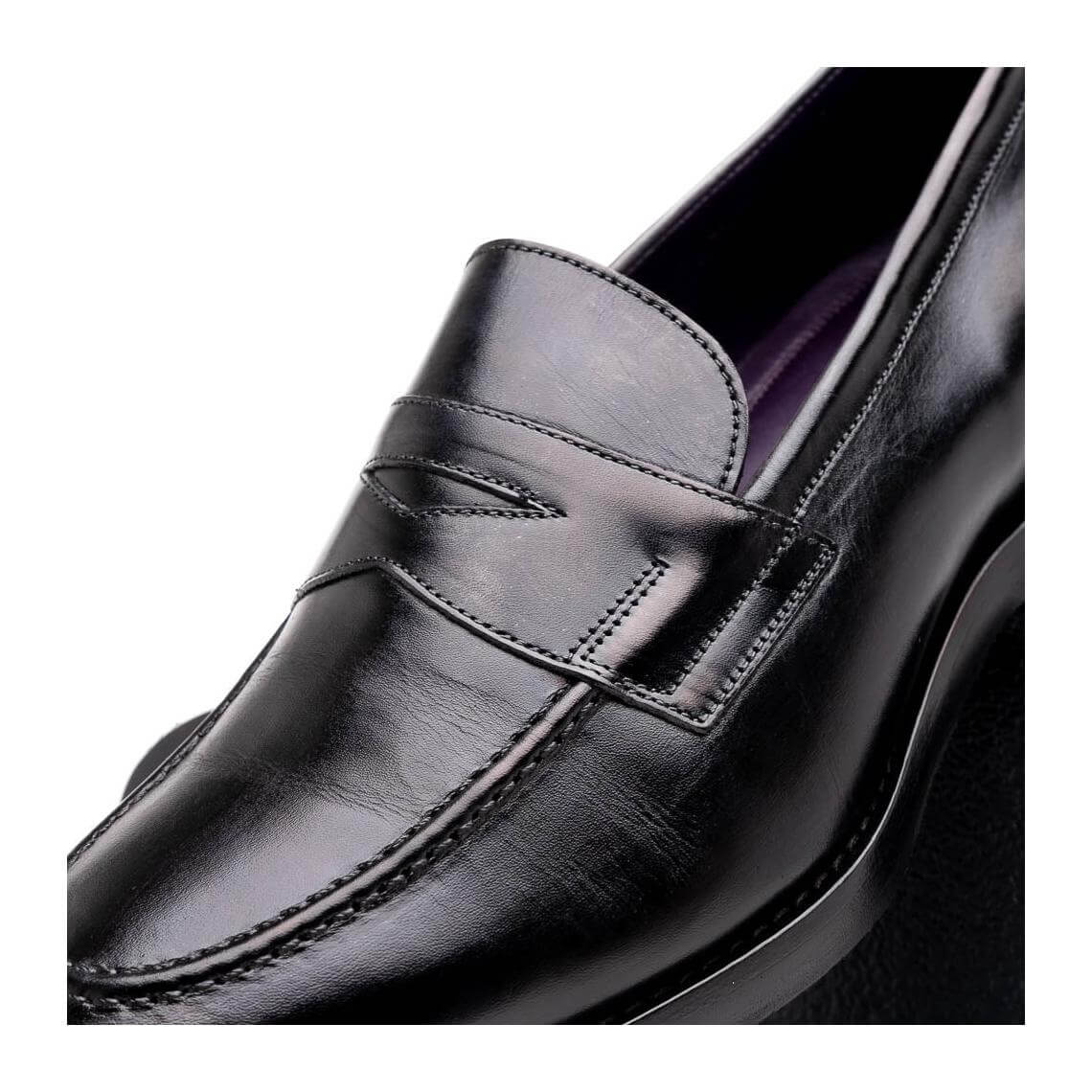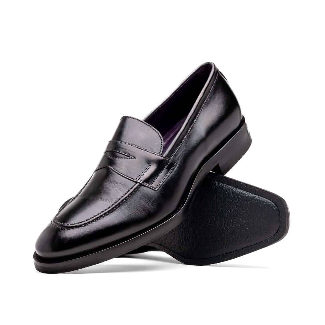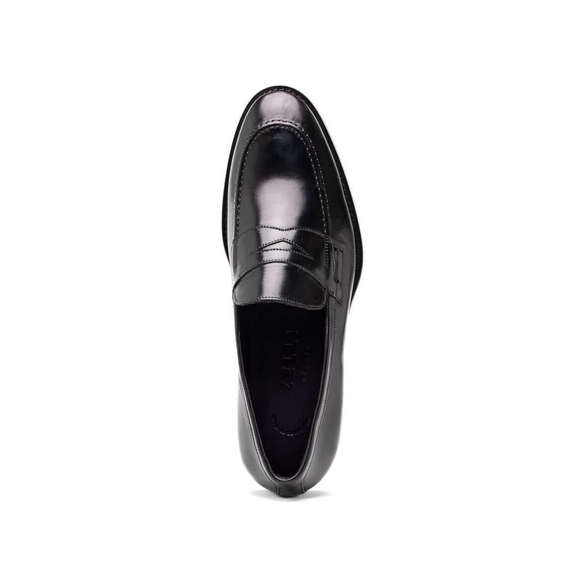 • Zelli Italia Roma Men's Shoes Black Burnished Calf-Skin Leather Penny Loafer (ZEL1019)