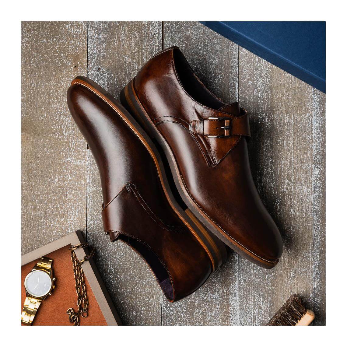• Zelli Italia Roman Men's Shoes Chestnut Calf-Skin Leather Single Monk-Strap (ZEL1076)