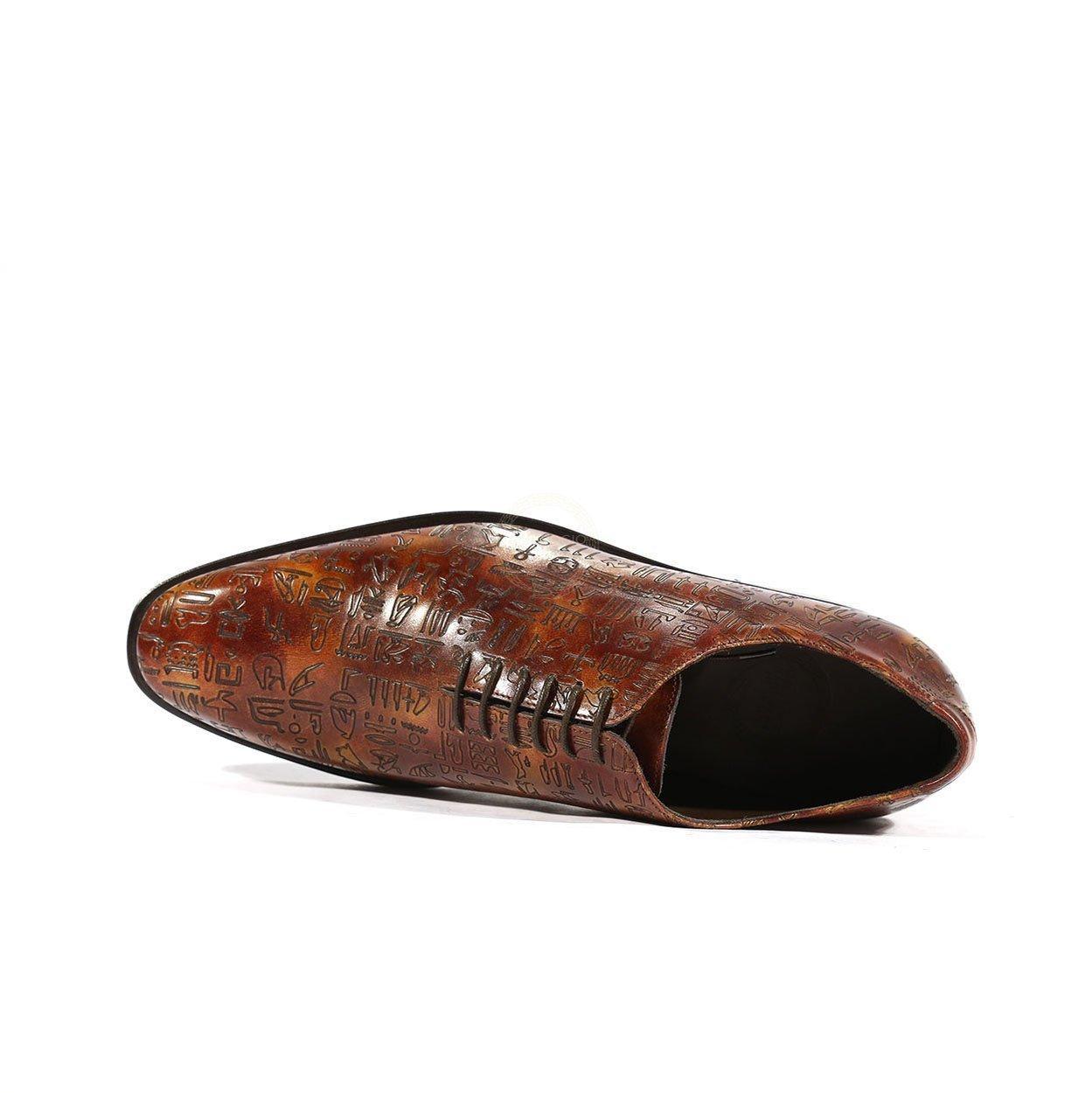 • Ambrogio Men's Shoes Brown Ancient Egyptian Print / Patina Leather Whole-Cut Oxfords (AMB1479)