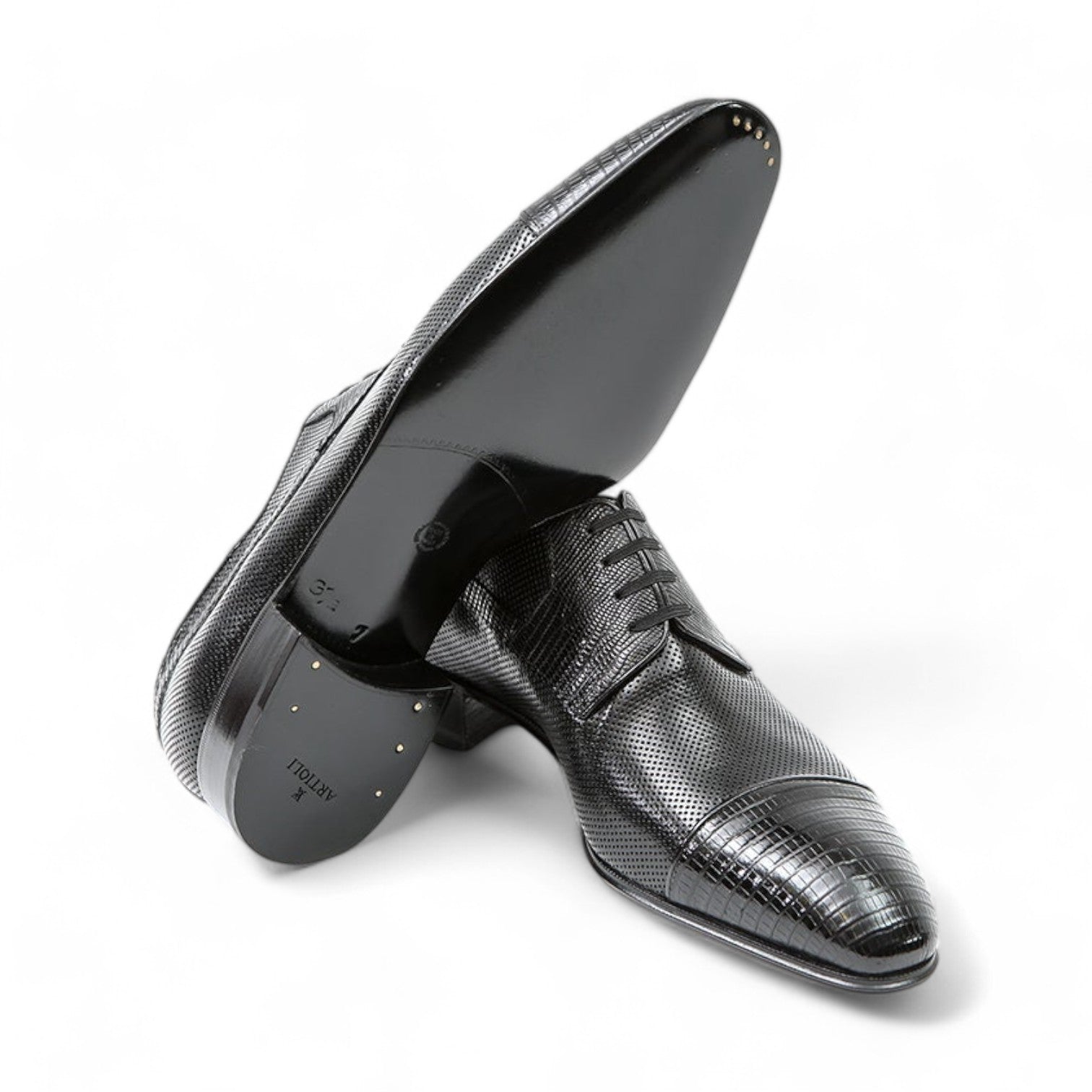 Artioli Matteo Men's Handmade Italian Shoes Perforated Kangaroo Leather / Lizard Derby (ART1023)