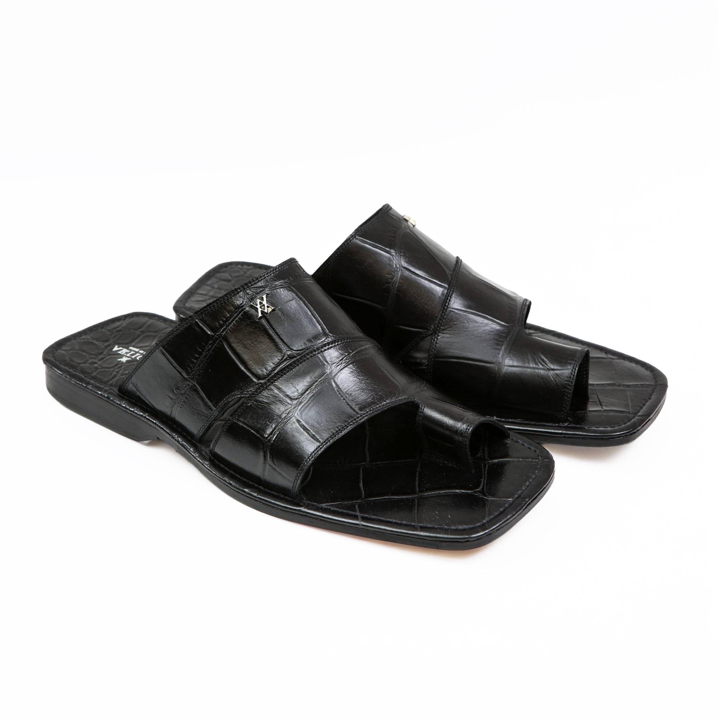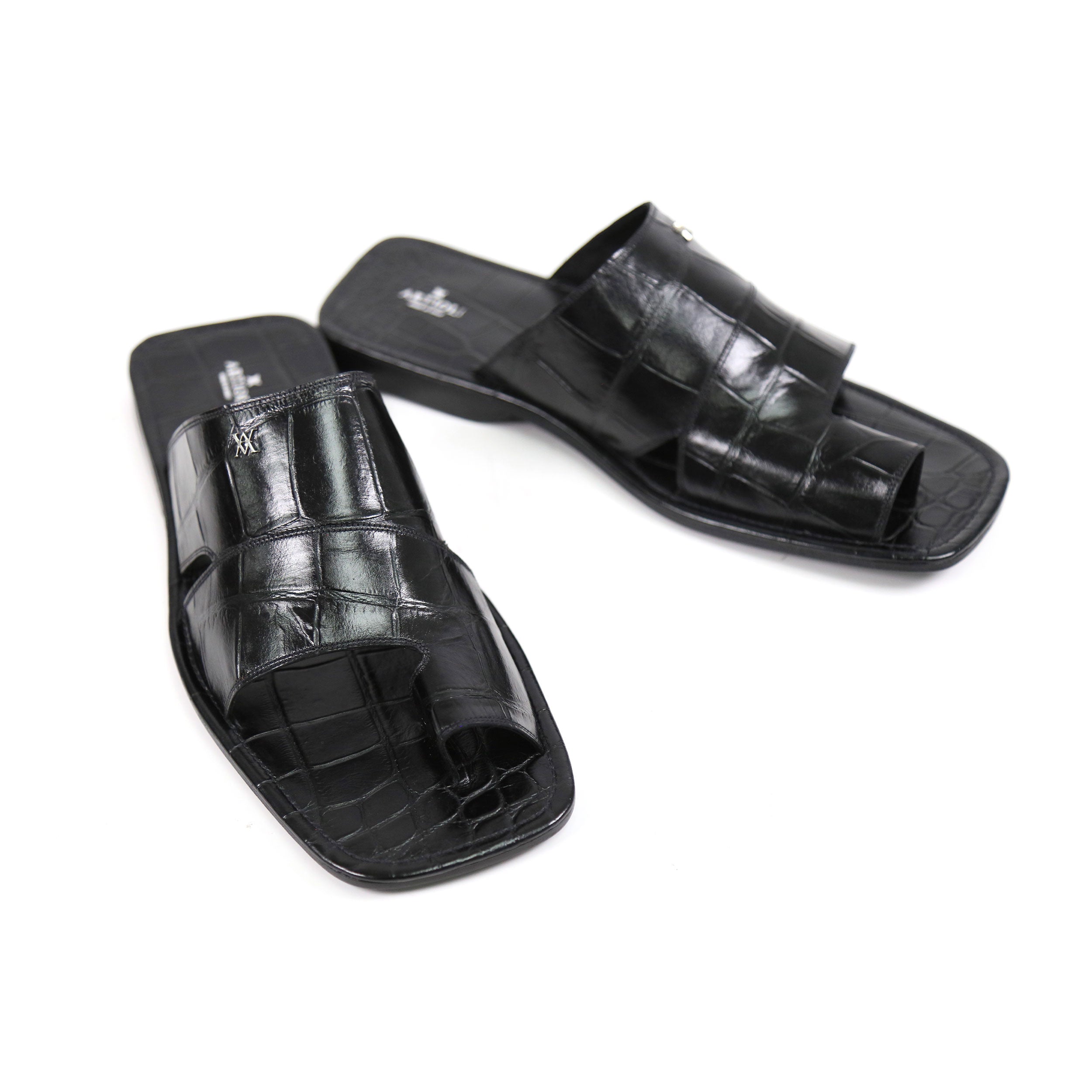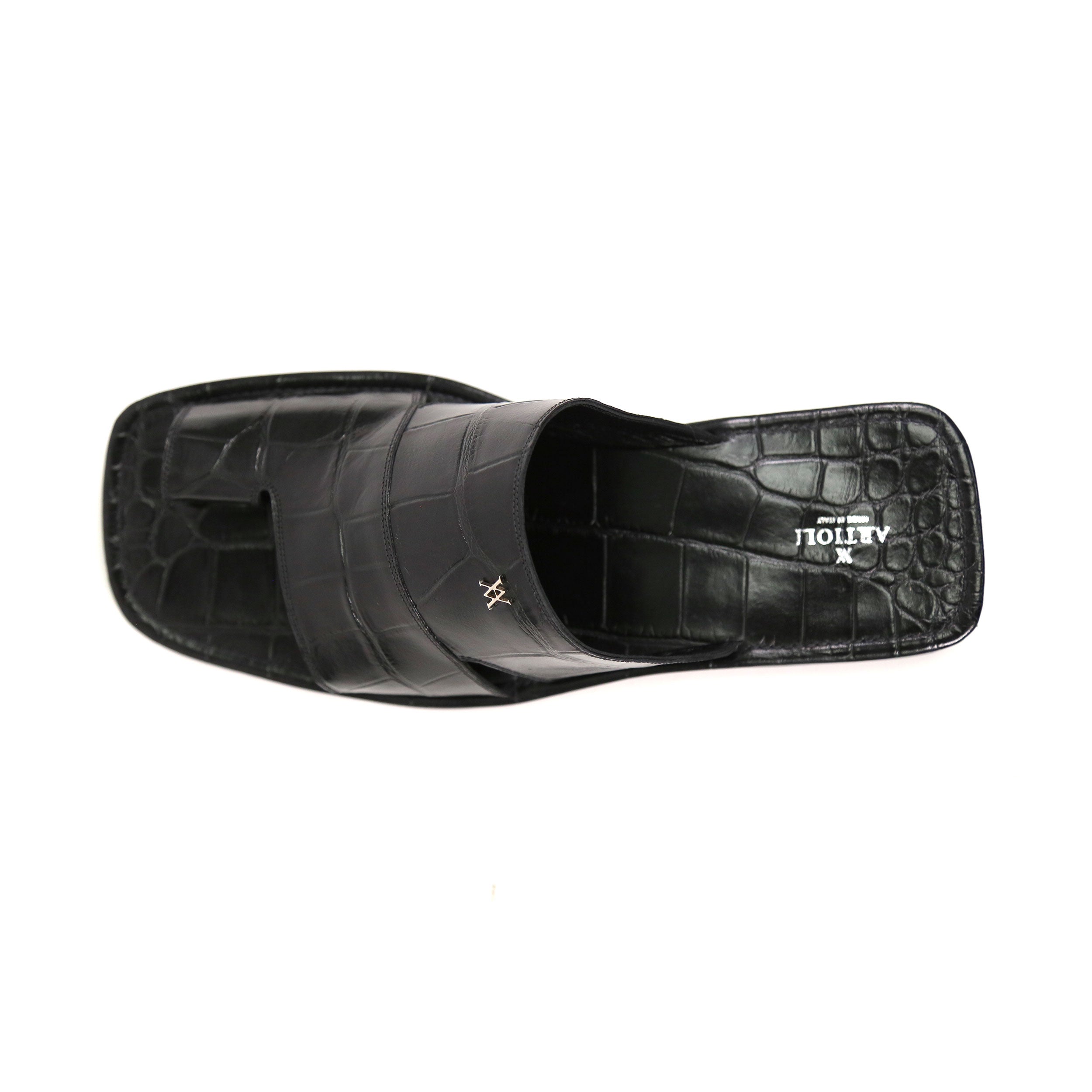 Artioli Pantelleria Men's Luxury Italian Shoes Alligator Print Leather Slip-On Sandal (ART1141)