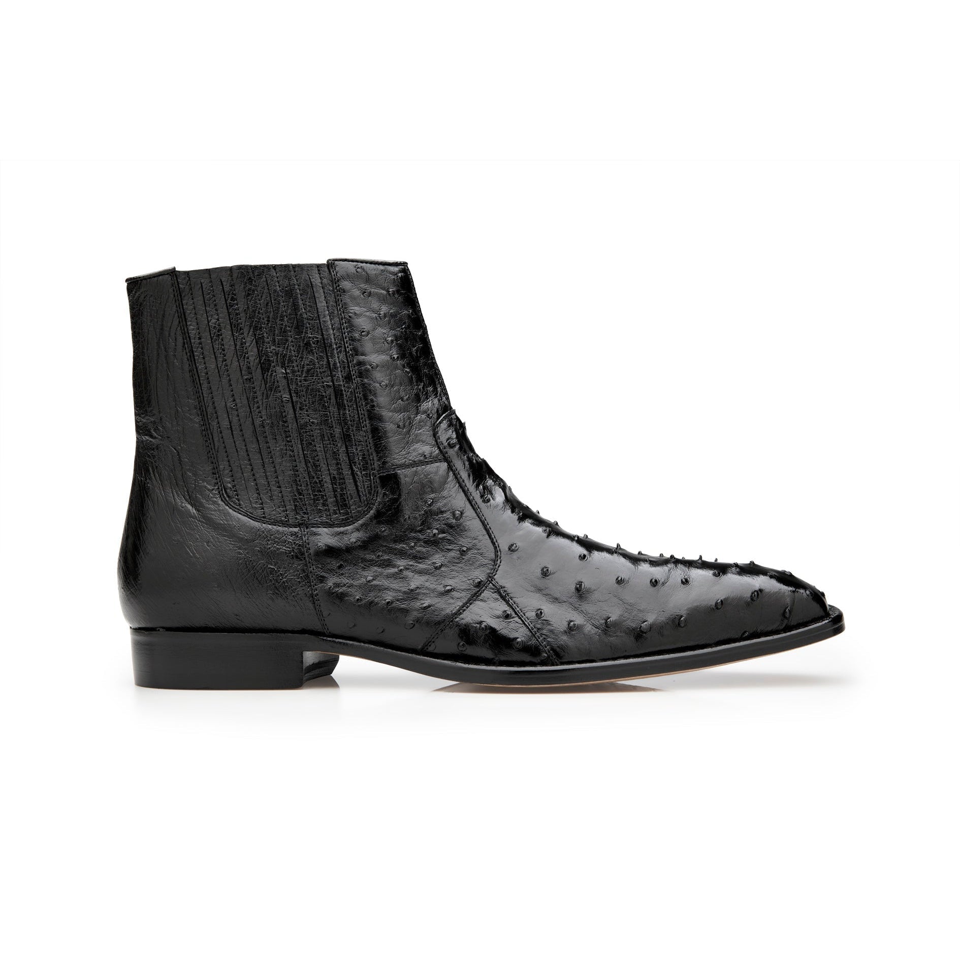 • Belvedere R55 Roger Men's Shoes Exotic Ostrich Skin Ankle Zipper Boots (BV3107)