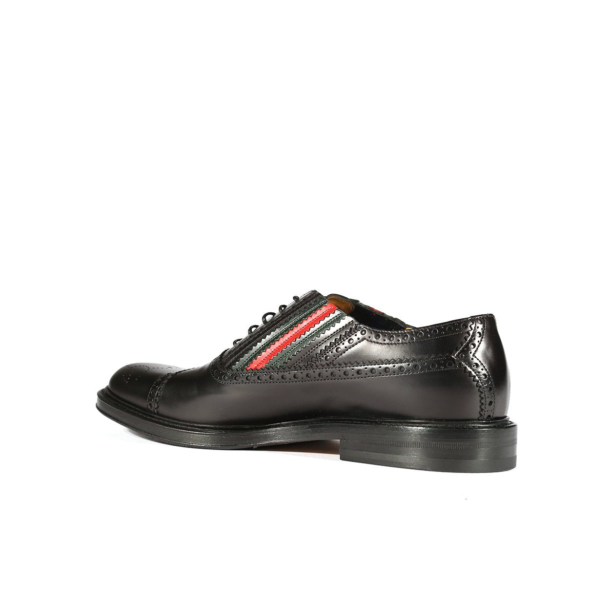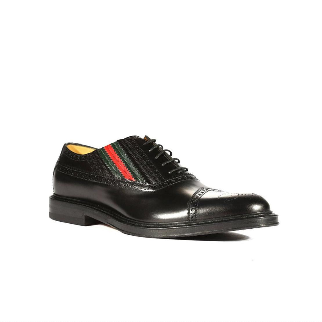 • Gucci 547592 0GQ30 1078 Men's Shoes Black Calf-Skin Leather Cap-Toe Oxfords (GGM1719)