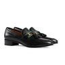 Gucci 624720 1066 Men's Shoes Black Calf-Skin Leather with Web and Interlocking G Tassels Loafers (GGM1721)