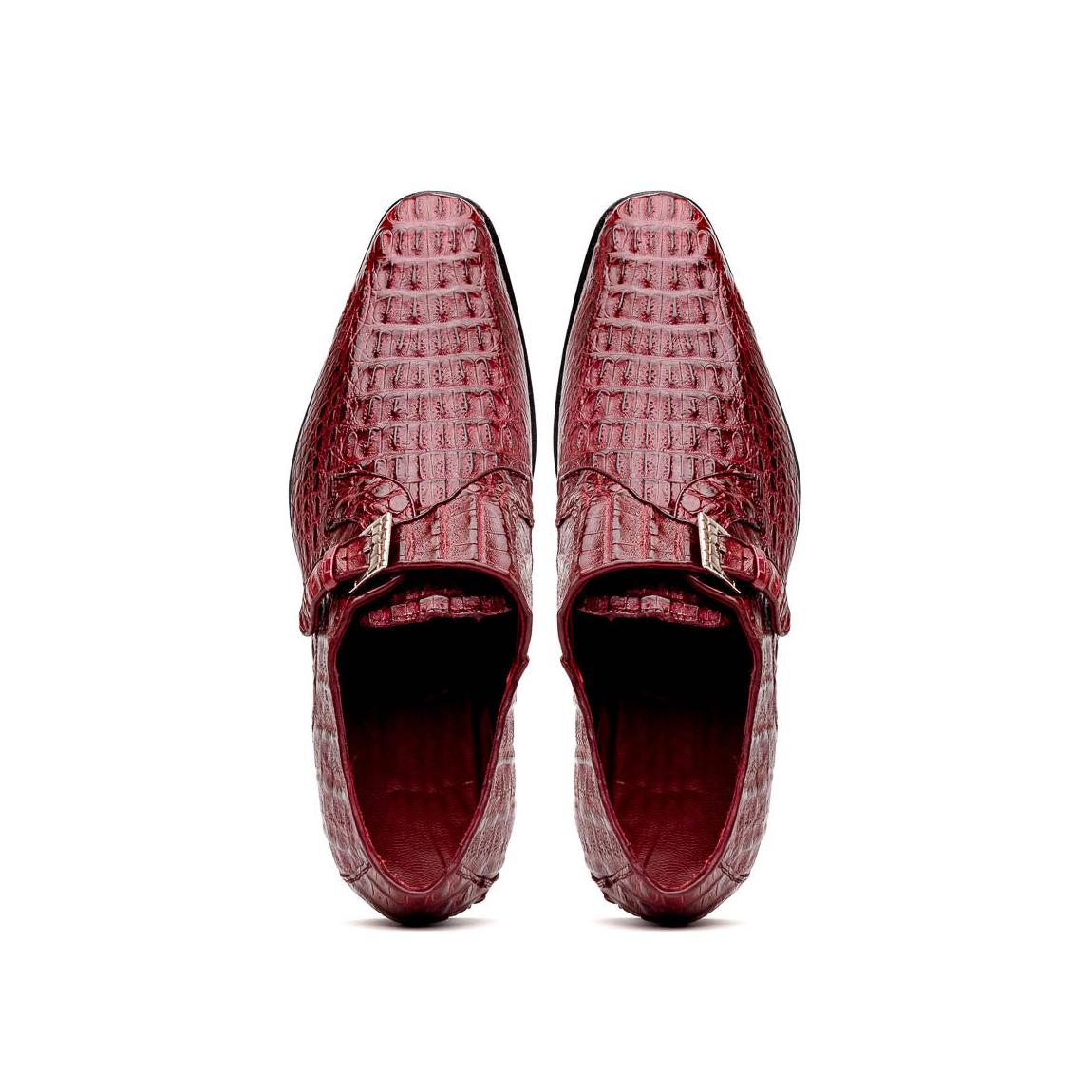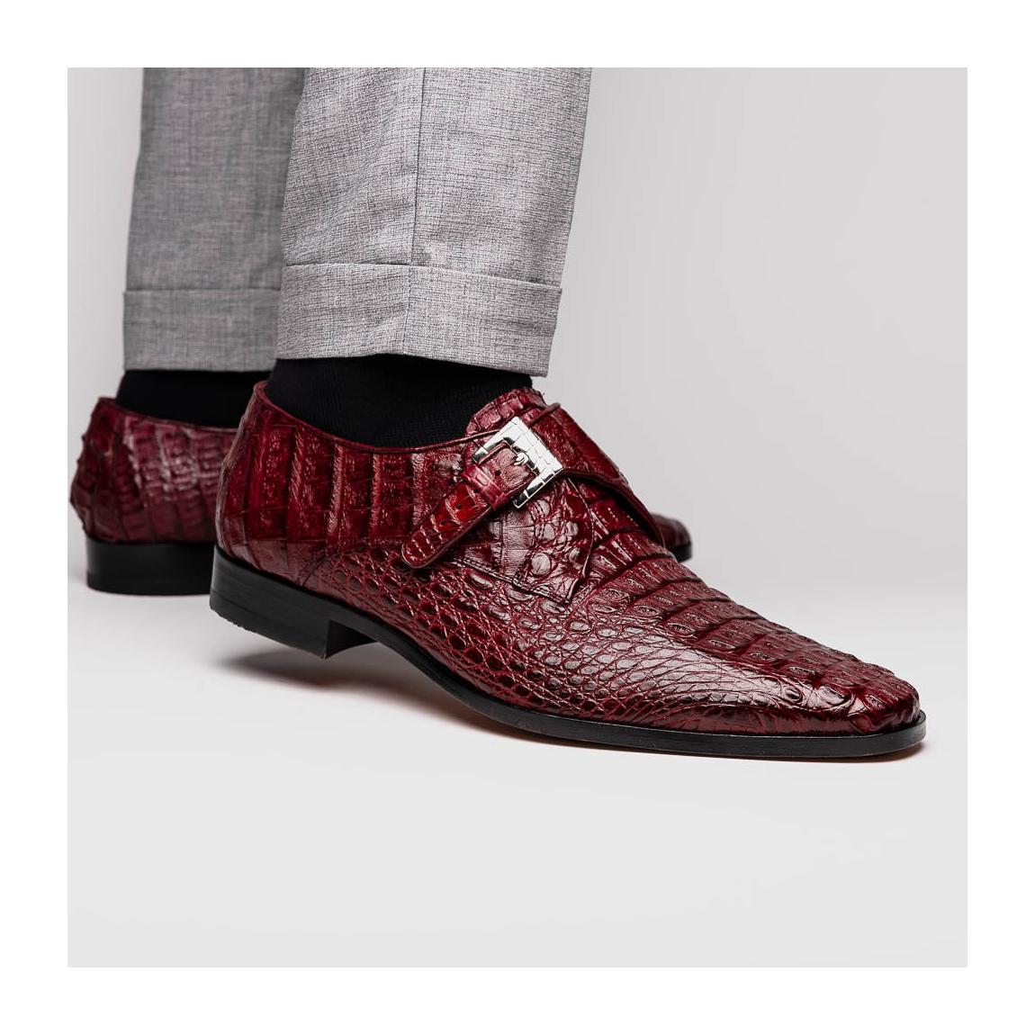 The LUIGI is our fully wrapped genuine caiman crocodile dress monk strap featuring chrome scale textured buckle, full leather outsoles, and a polished hand-finish. Dress these up with your favorite jeans or slacks for a stunning look.