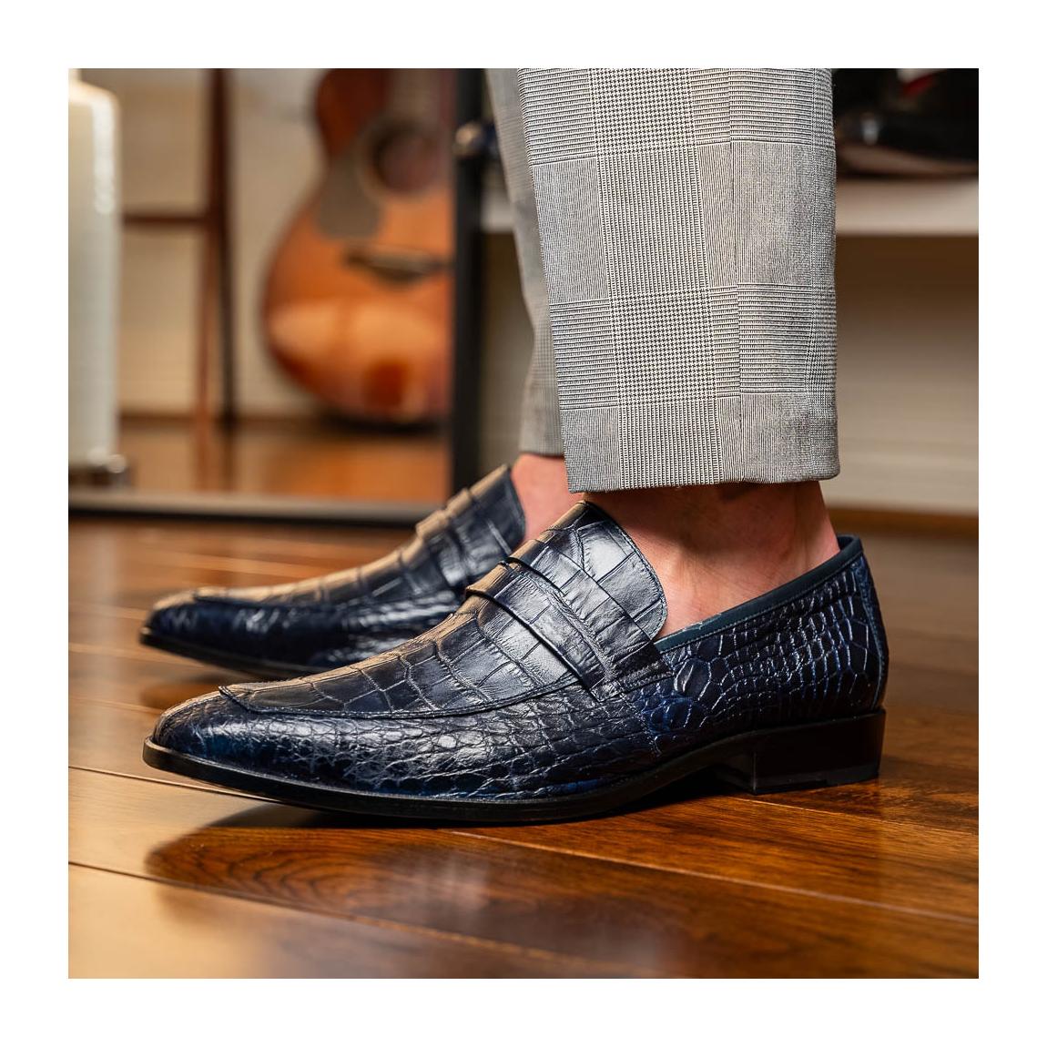 Elevate your presence at formal events with our genuine alligator Oxfords, designed with premium leather soles. These exquisite dress shoes offer a perfect combination of style and elegance, ideal for those seeking to express their personality through their attire.