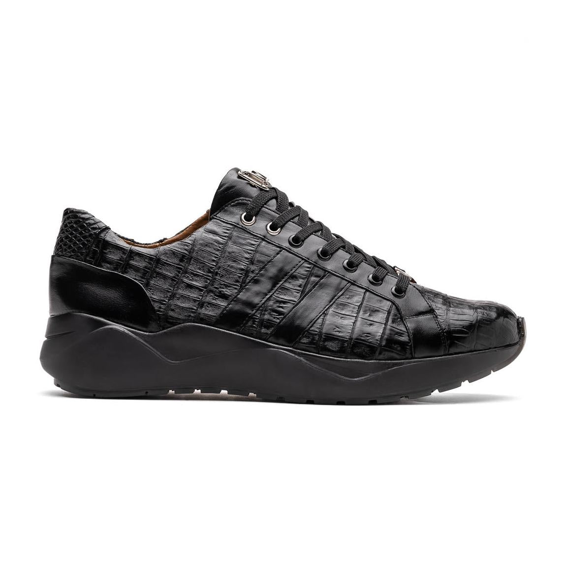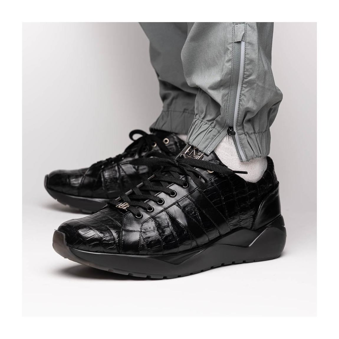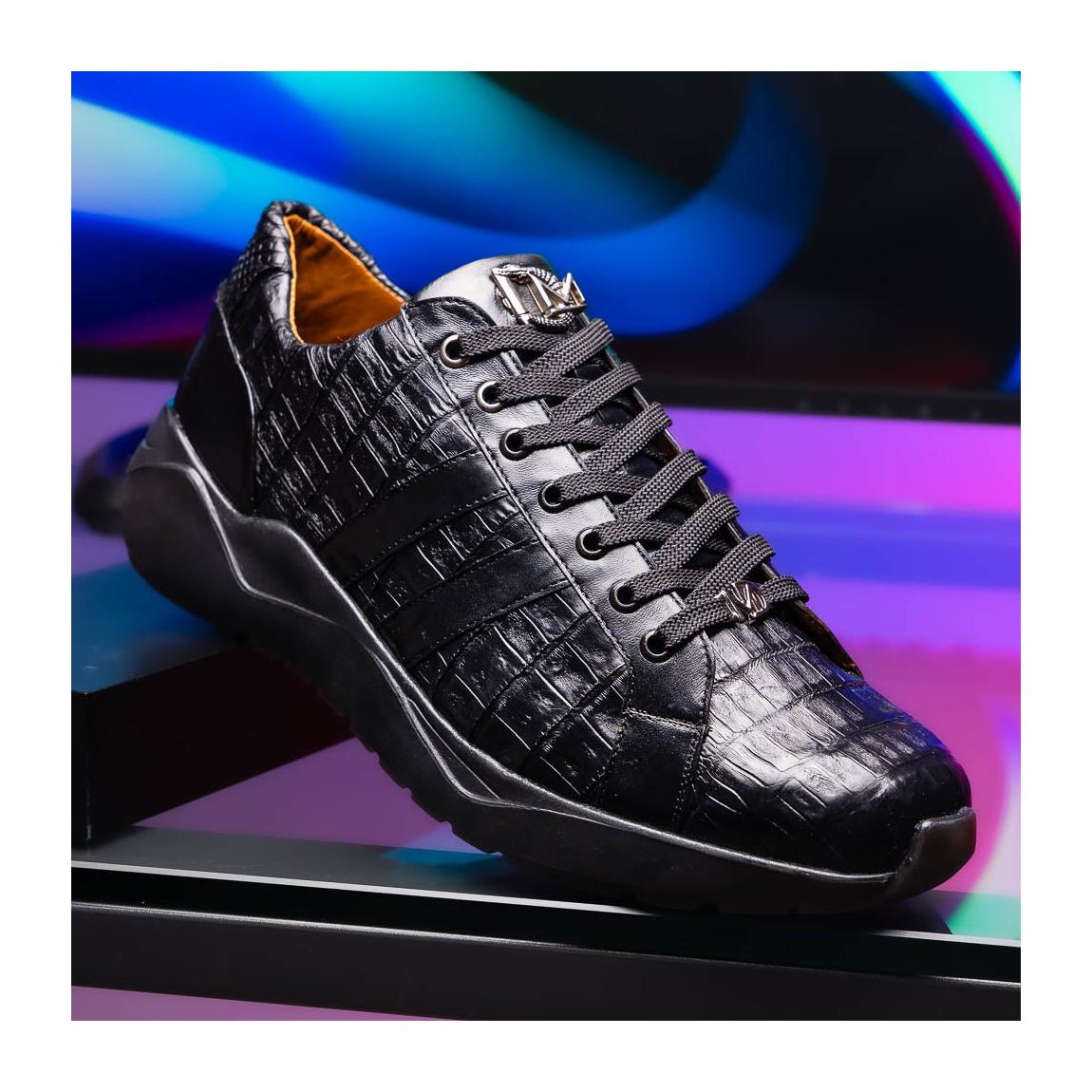 Marco Di Milano Nino Men's Shoes Black Genuine Caiman Crocodile Fashion Sneaker (MDM1108)