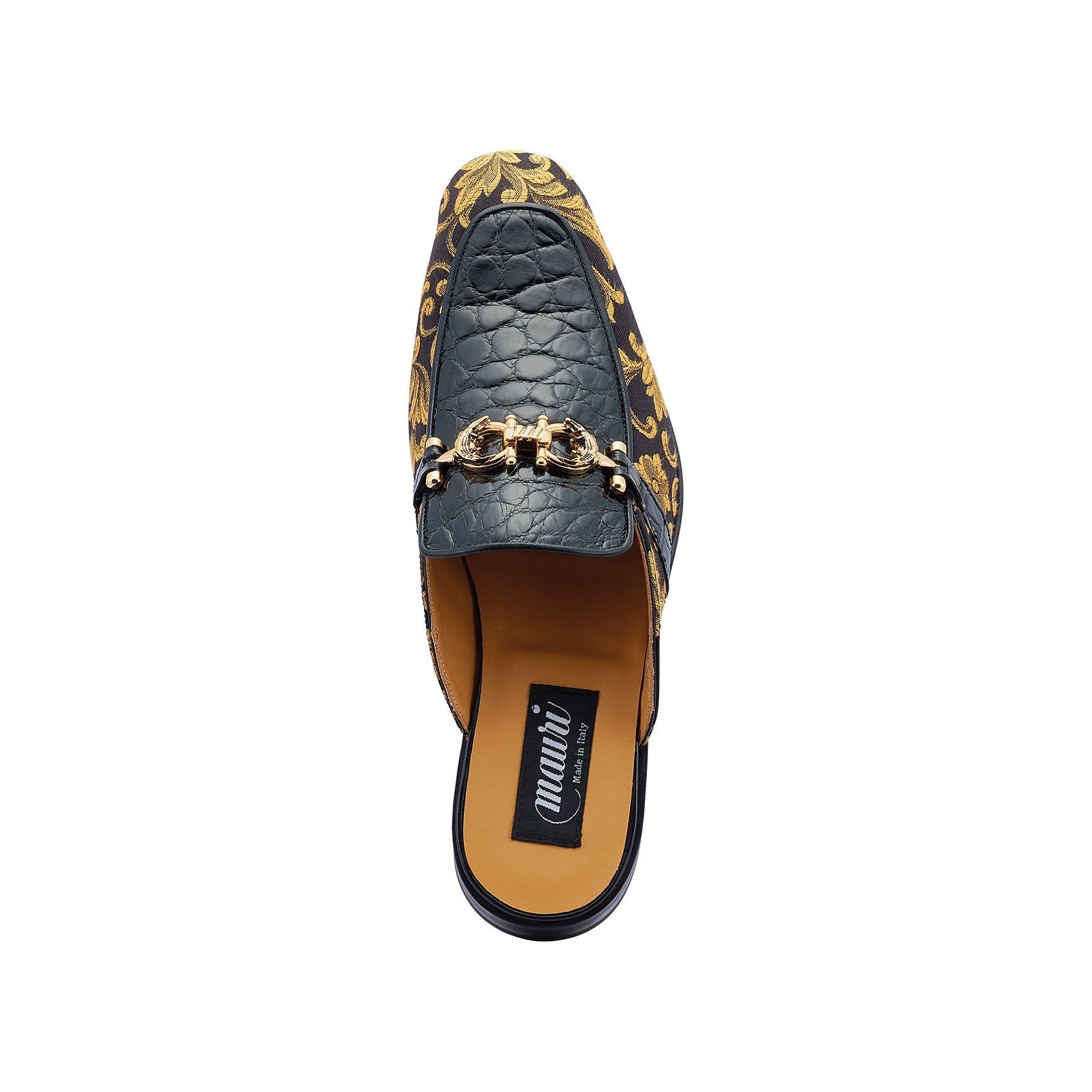 • Mauri 4976 Bermuda Men's Shoes Exotic Alligator Skin & Gobelins Fabric Horsebit Mules (MA5442)