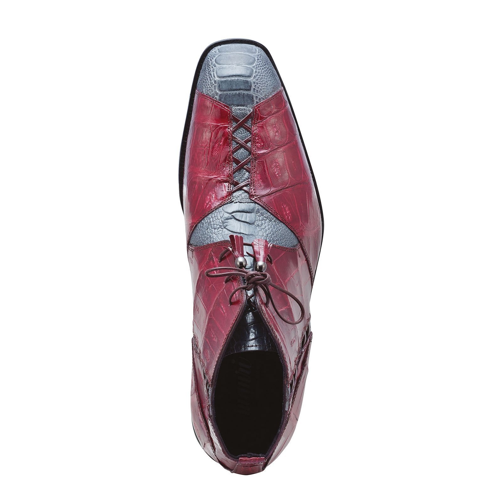 • Mauri Harlem 4926 Men's Shoes Gray & Red Exotic Caiman Crocodile / Ostrich Leg Chukka Boots (MA5264) (Special Order)