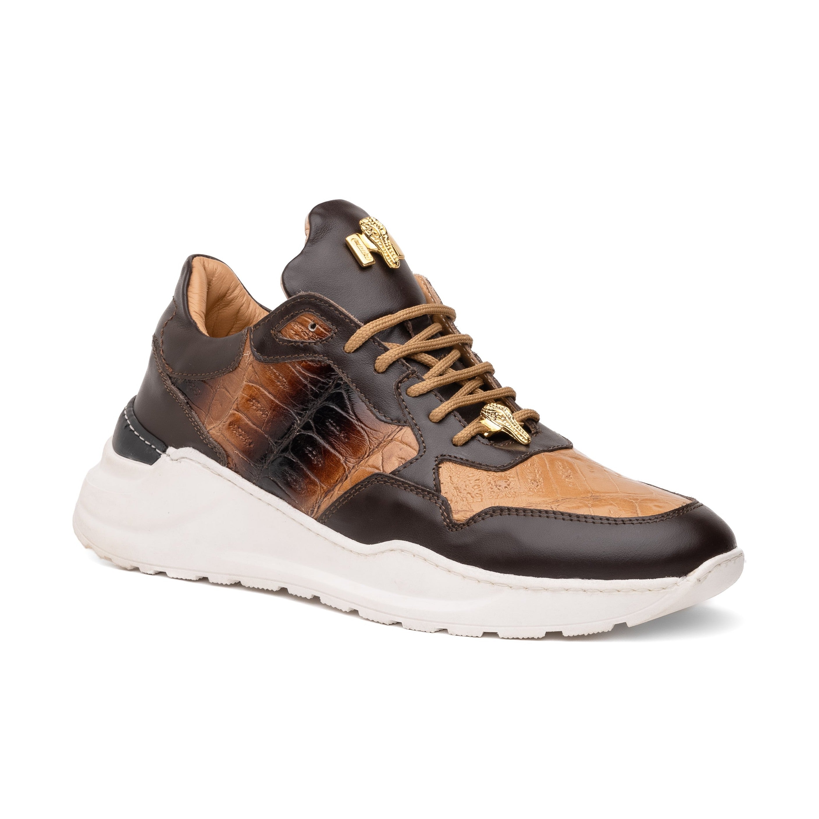 Mauri Runner 8457/1 Men's Shoes Sport Rust & Dune Exotic Crocodile / Nappa Leather Casual Bubble Sneakers (MA5619)