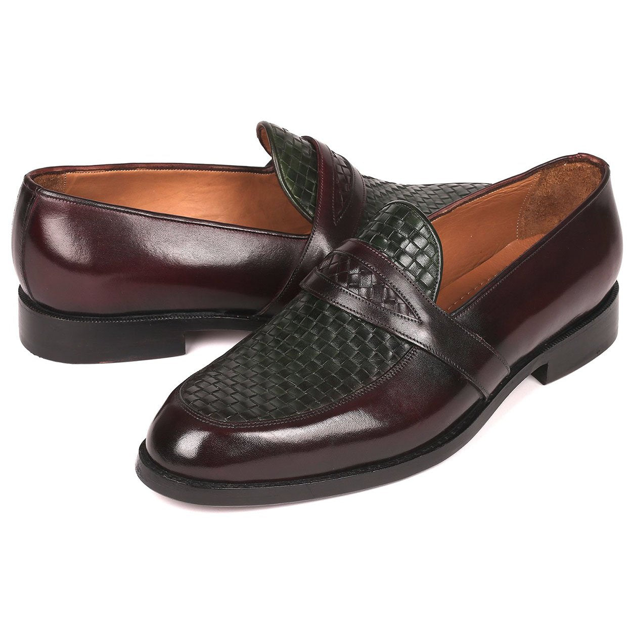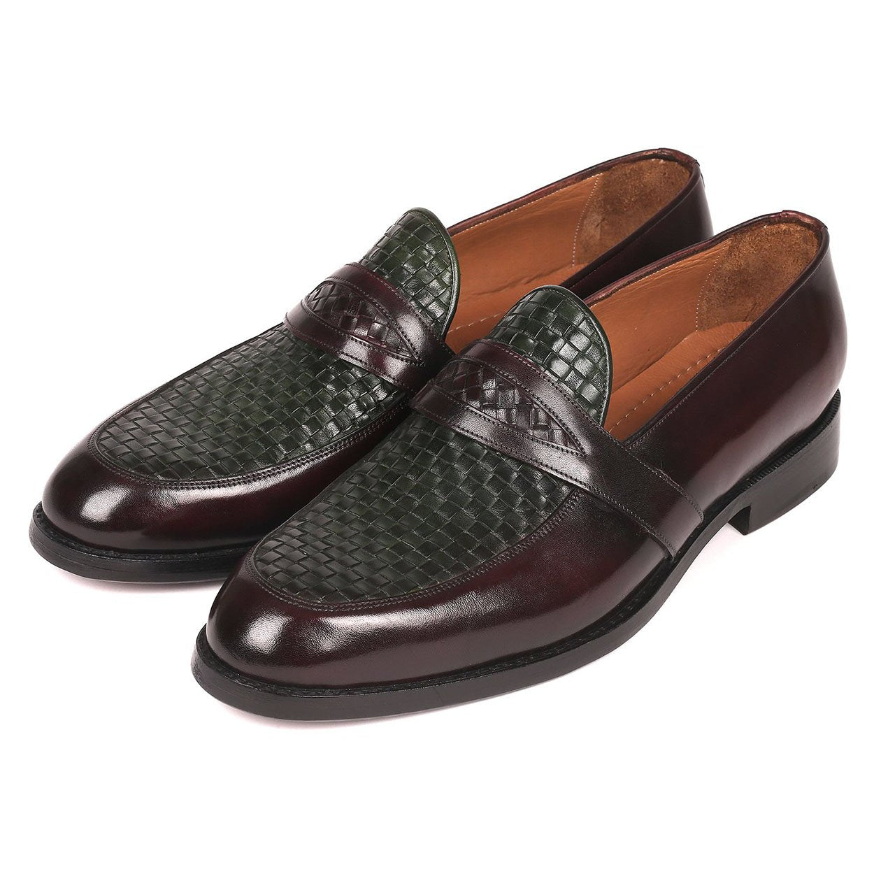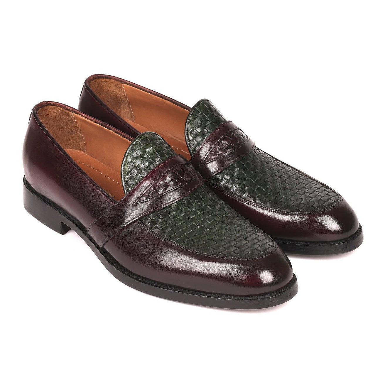 Paul Parkman Men's Shoes Green / Brown Woven & Calf-Skin Leather Slip-On Loafers 548LF832 (PM6208)