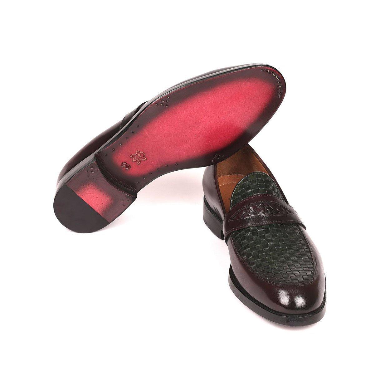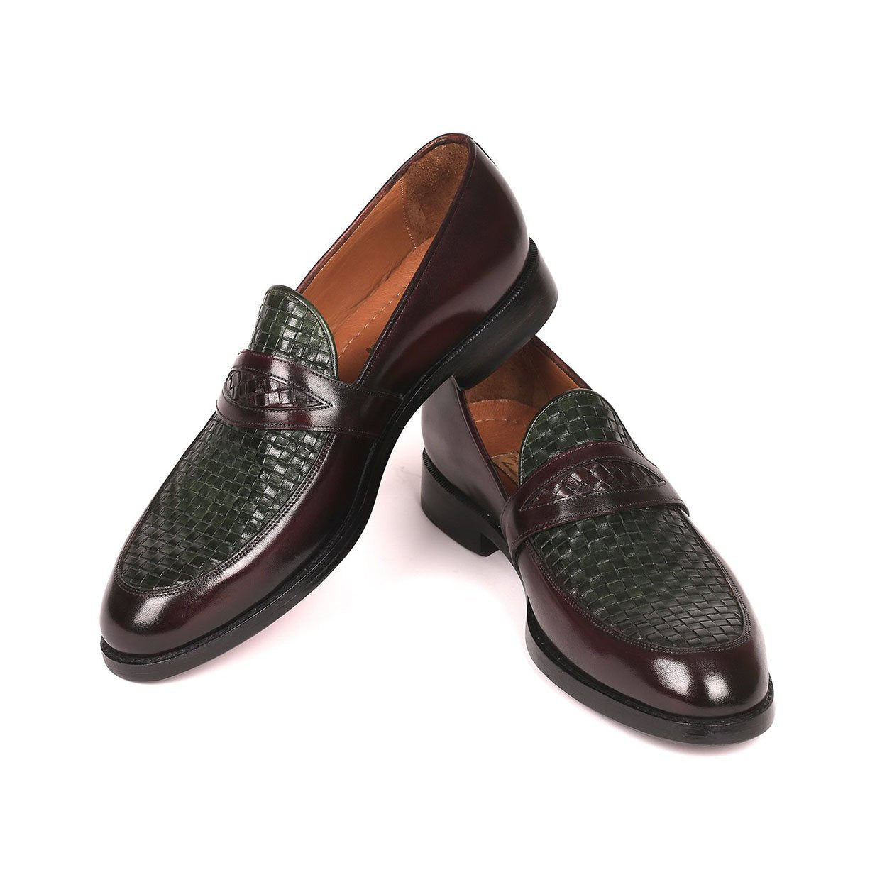• Paul Parkman Men's Shoes Green / Brown Woven & Calf-Skin Leather Slip-On Loafers 548LF832 (PM6208)